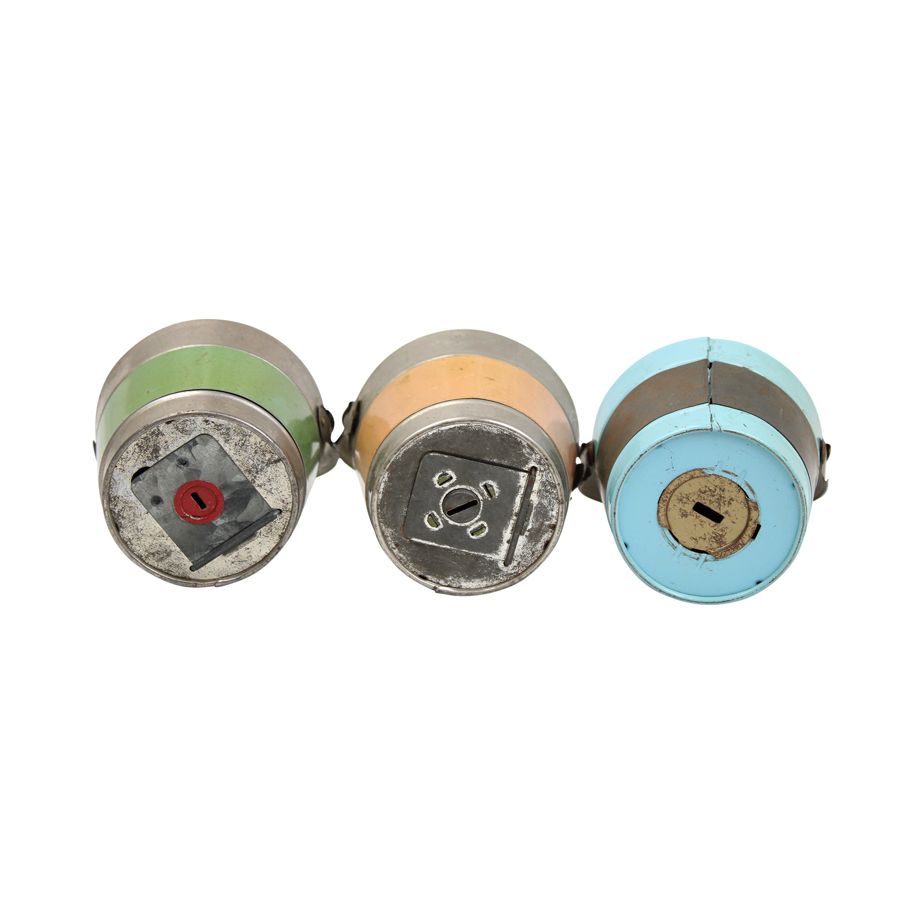 One working key is included with the lot, and it unlocks all three banks. These painted banks are in very good condition with all paint, wording, and locking mechanisms showing well.