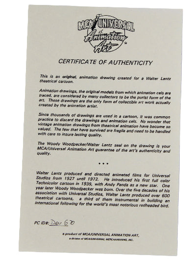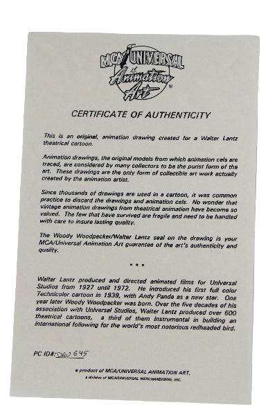 All of the colored cells and drawings are stamped and are all authentic. This is a rare opportunity to own a meaningful set of cartoon history that relates to the red-headed troublemaker named Woody.
