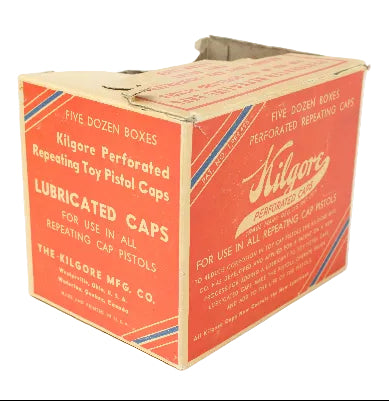 38 Boxes of Old Kilgore Perforated Caps in Original Retailers 60-Box Cardboard Illustrated Case