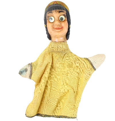 The puppet friend of Howdy Doody includes Princess Summerfall Winterspring, Dilly Dally and Phineas T. Bluster. Two of the puppets have some rubber cement type adhesive on their rubber heads that is removable with either alcohol or scrubbing with some soap and water.