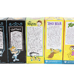 Each back panel on the box features a detailed biography of the character. Each box is 7-3/4" tall, 3" wide and 3" deep with a clear plastic panel to view the cartoon character.
