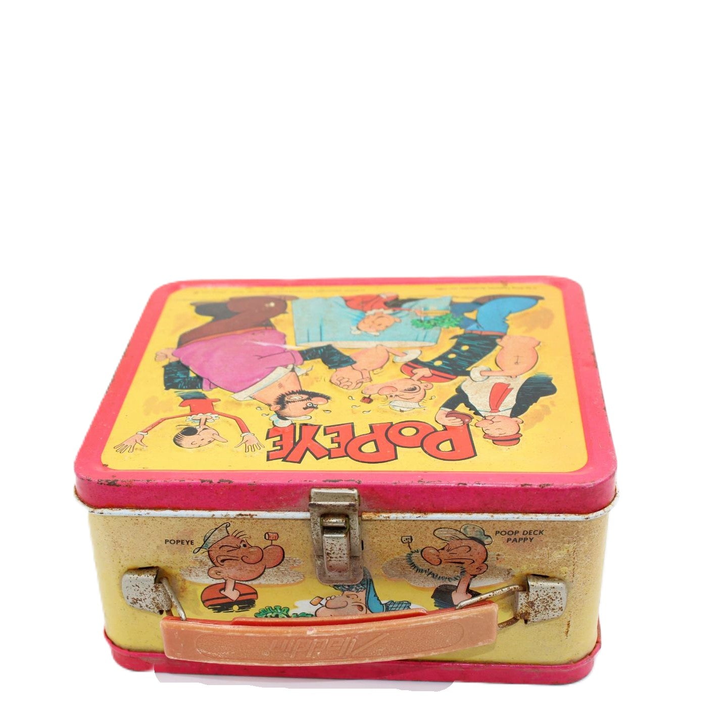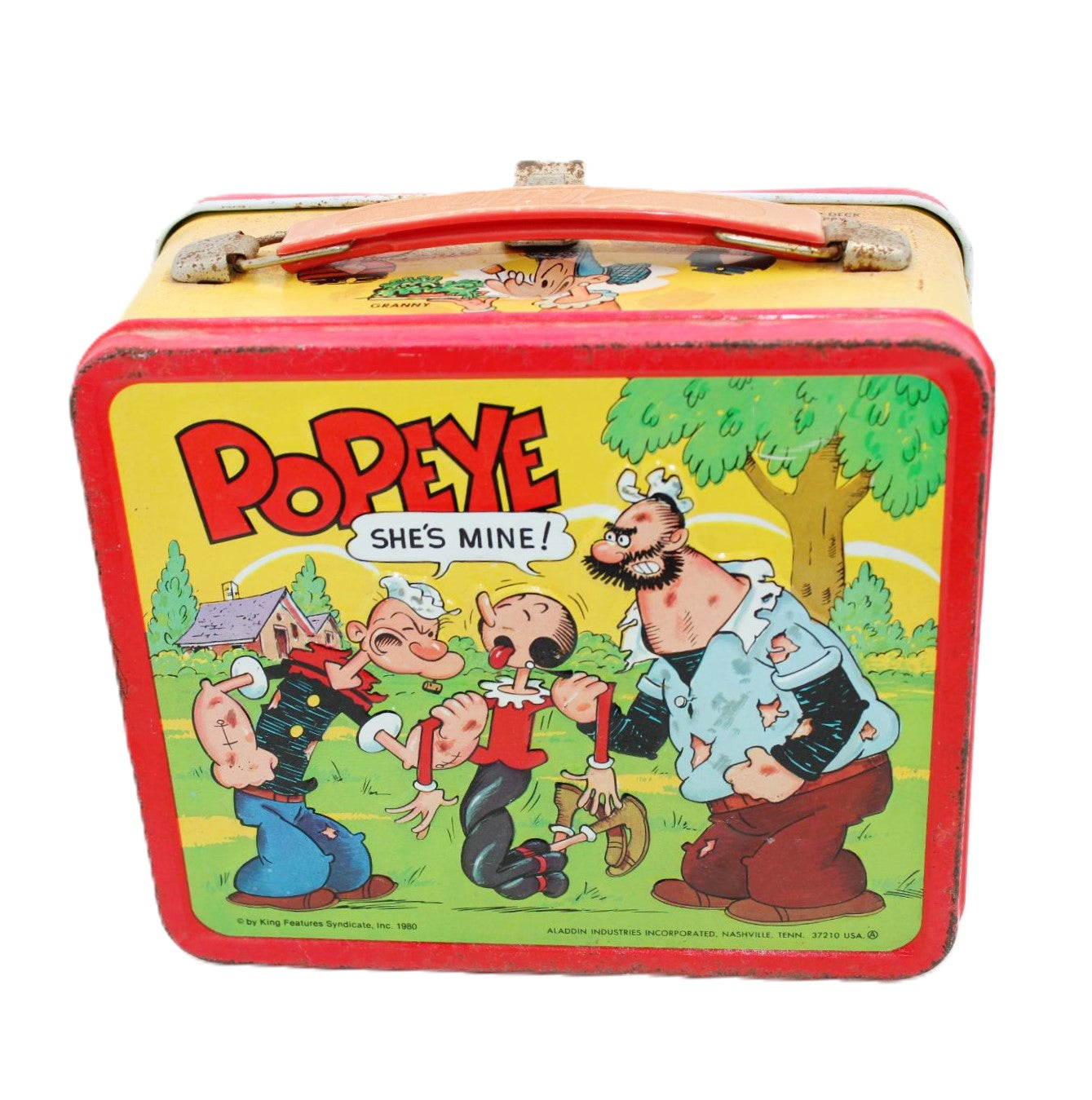 A 1980 Aladdin Popeye Metal Lunch Box and a 1961 Popeye Bell Ringer Toy