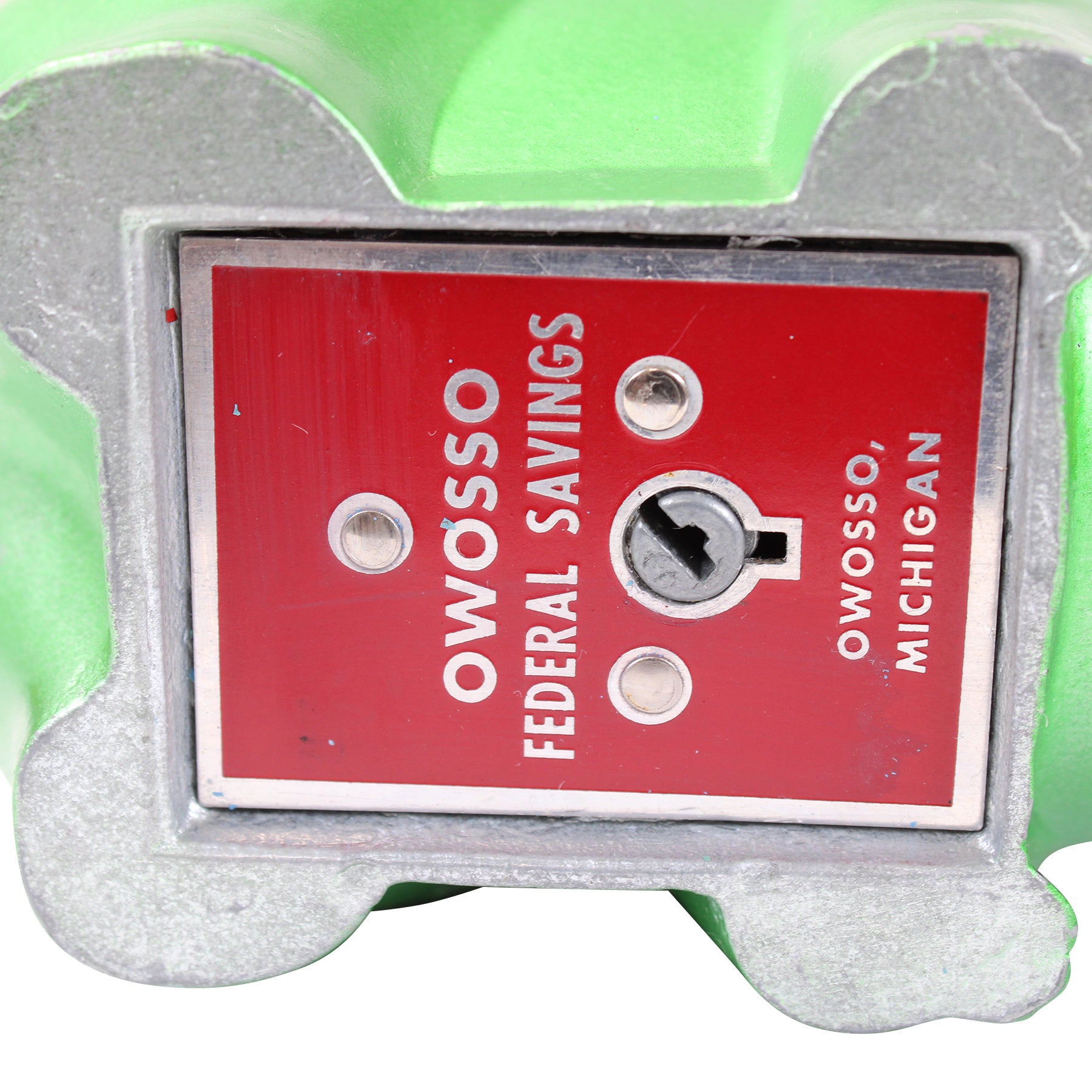 The green 5-3/4" Owosso Federal Savings Bank (Owosso, MI) is in excellent condition.