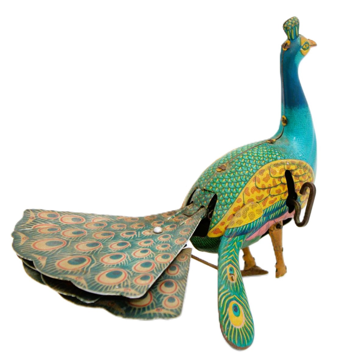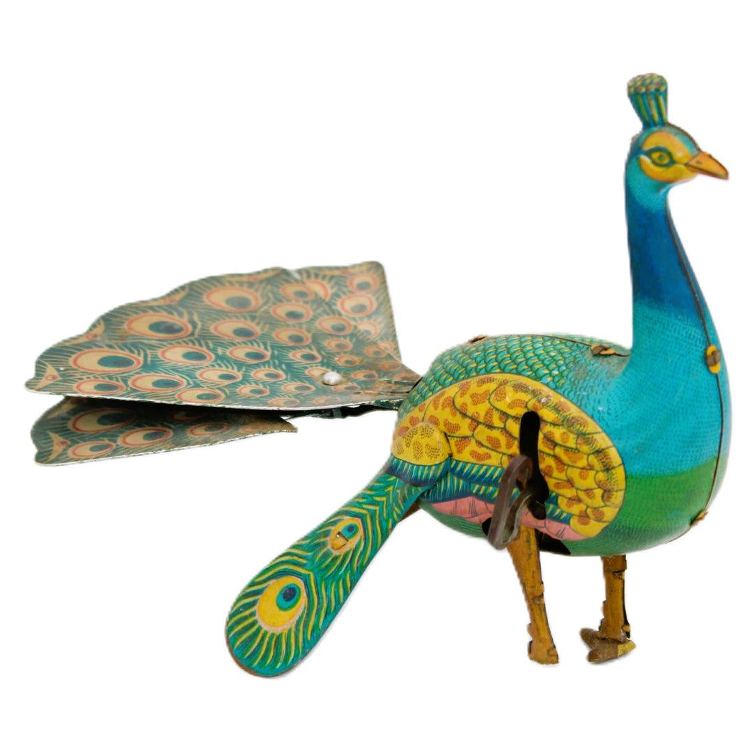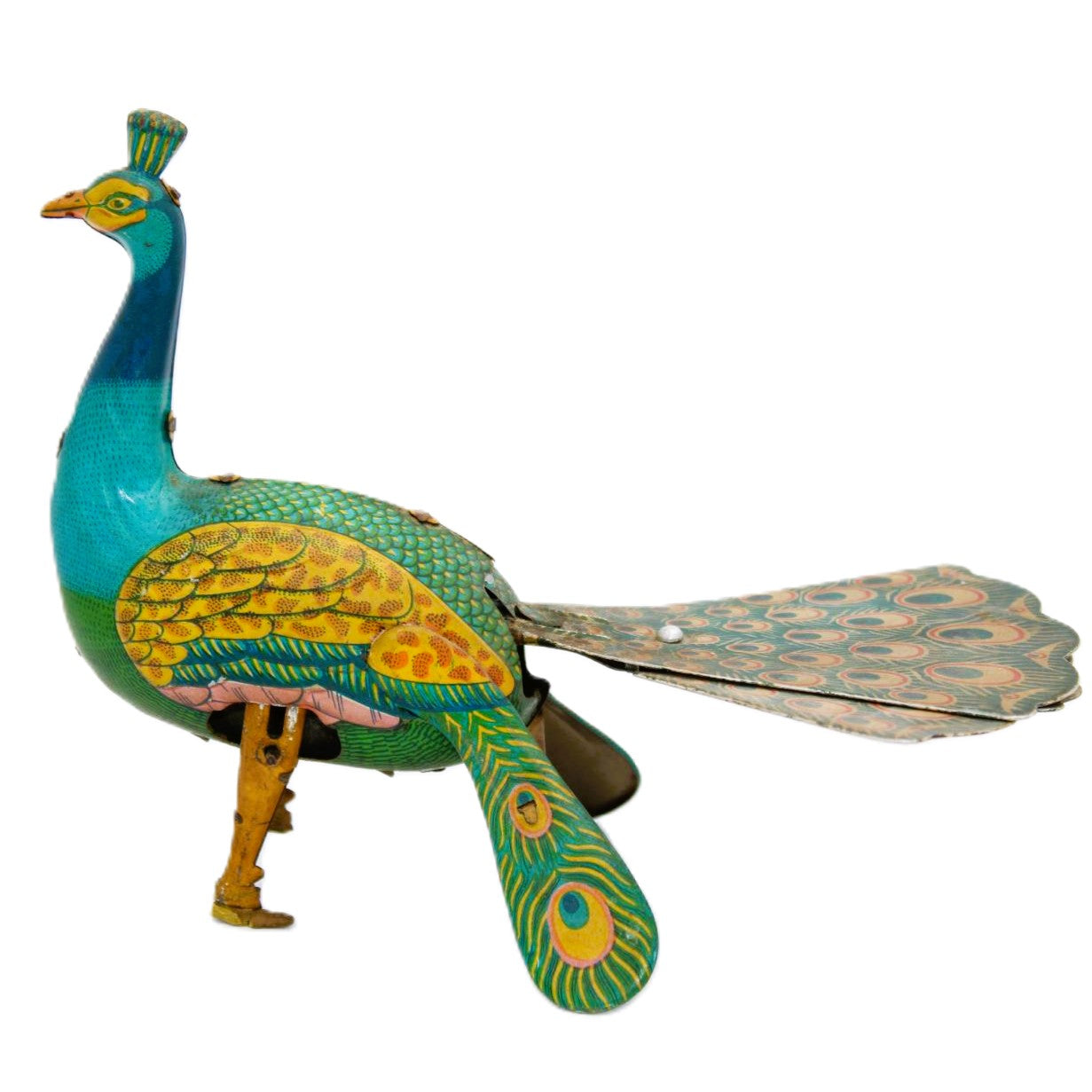 Alps Japan Colorful Wind-Up Tin Litho Peacock