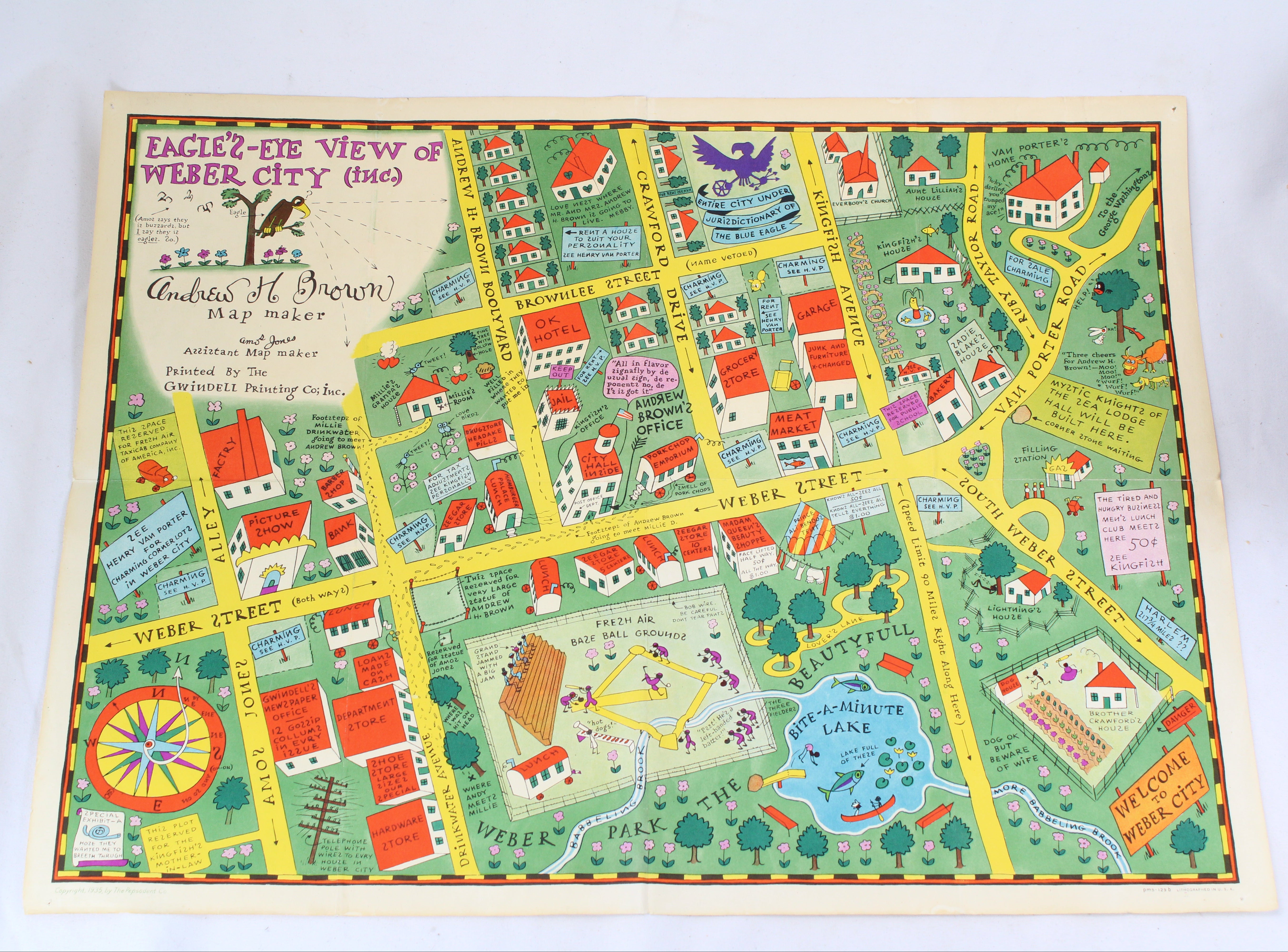Lastly, but probably most importantly, the lot includes a rare Amos 'N' Andy Radio Show Pepsodent Advertising Map of Weber City featuring Andrew H. Brown as the map maker and Amos Jones as the assistant map maker. This wonderful and excellent condition fold out map measures 19-3/4" in width and 15-1/4" in height. The map was created in 1937 and represents a view of Weber City. Weber City is the fictitious hometown of Amos 'N' Andy.