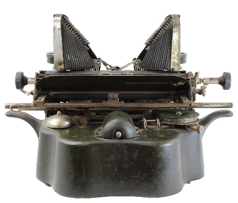 This 1912 Oliver #5 “Batwing” typewriter is a striking example of turn-of-the-century craftsmanship. Known for its distinctive open “batwing” design, this model made typing faster and maintenance easier — offering quick access to the ribbon and keys.