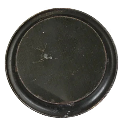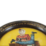 We believe this tip tray was made before 1930. The tin litho colored graphic of a grandmother sewing her grandson's britches with him still wearing the pants has become quite collectible.