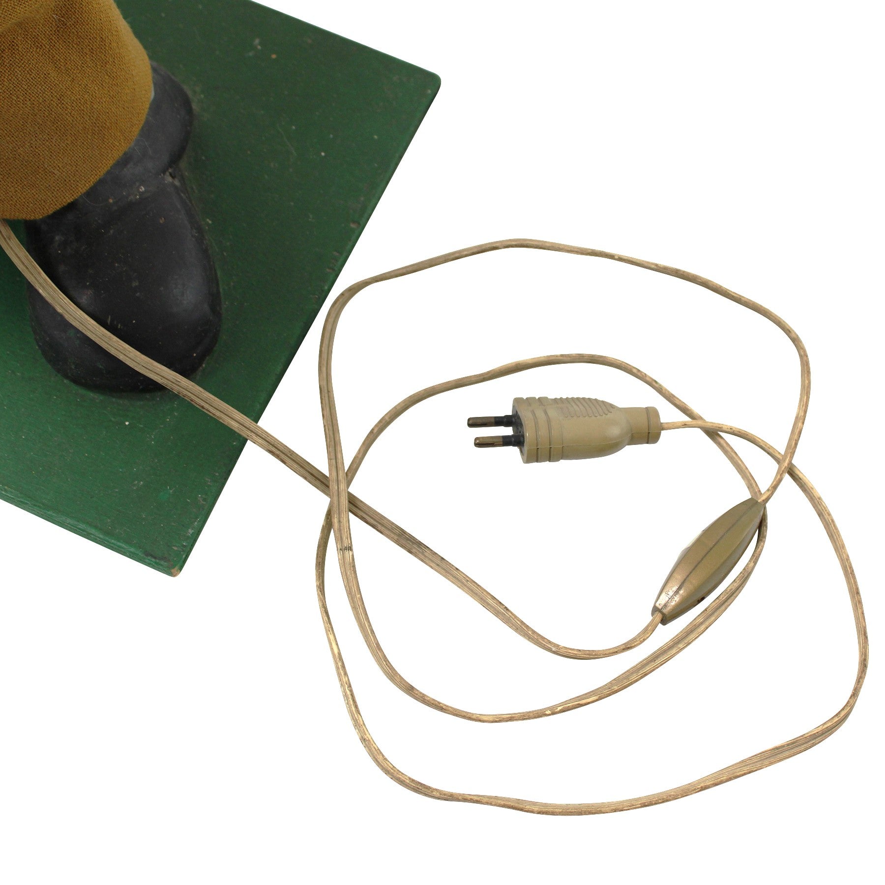We did not test the automation mechanism of this piece, and the wiring is European, so an adapter would be necessary unless new 110 USA wiring is installed. When we moved the right arm up and down, we experienced the moving mechanisms engaging with both the arm and head moving up and down.