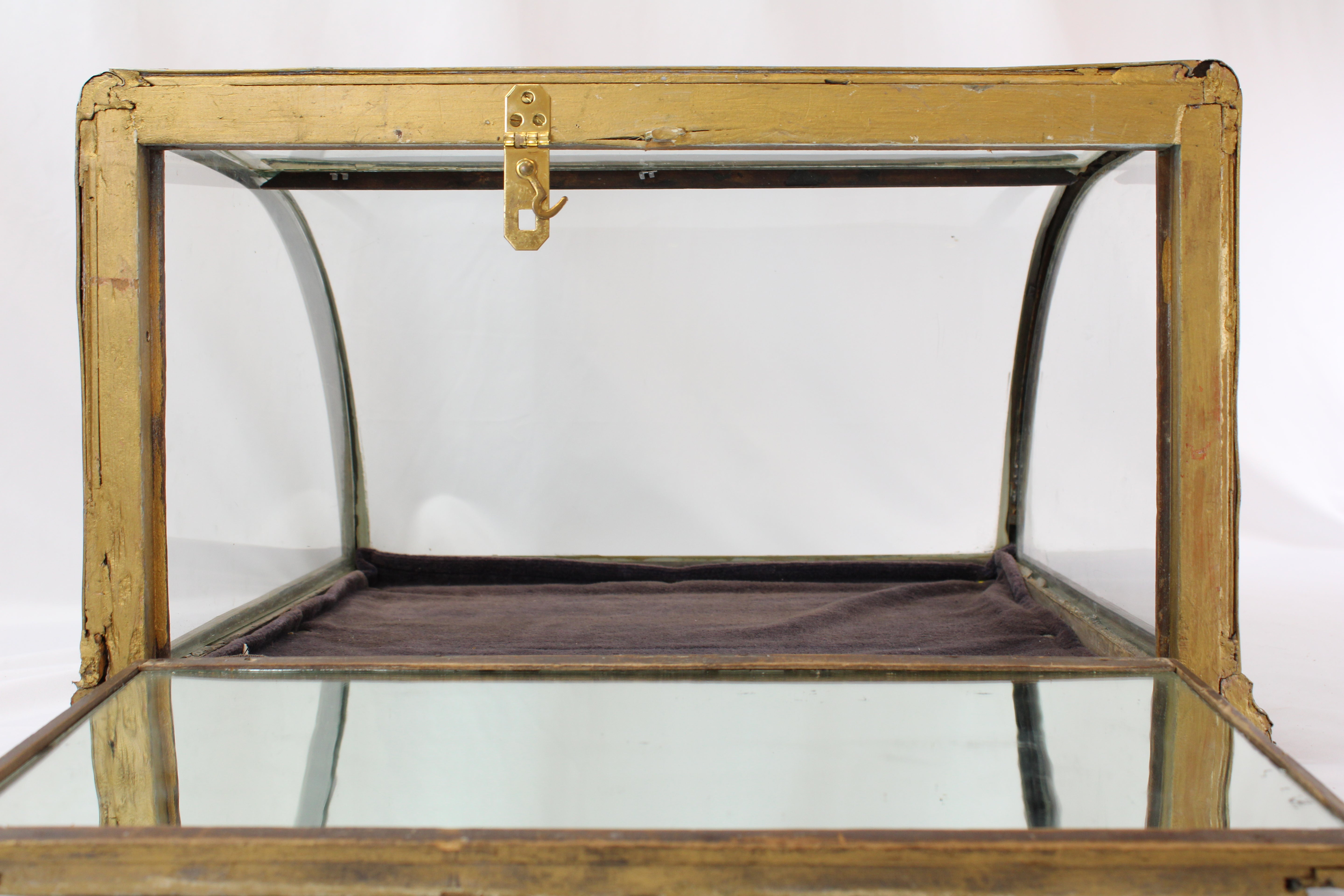 The black felt on the bottom of the case needs cleaning or replacement. The old 1890's to 1920's curved glass displays are becoming hard to find.