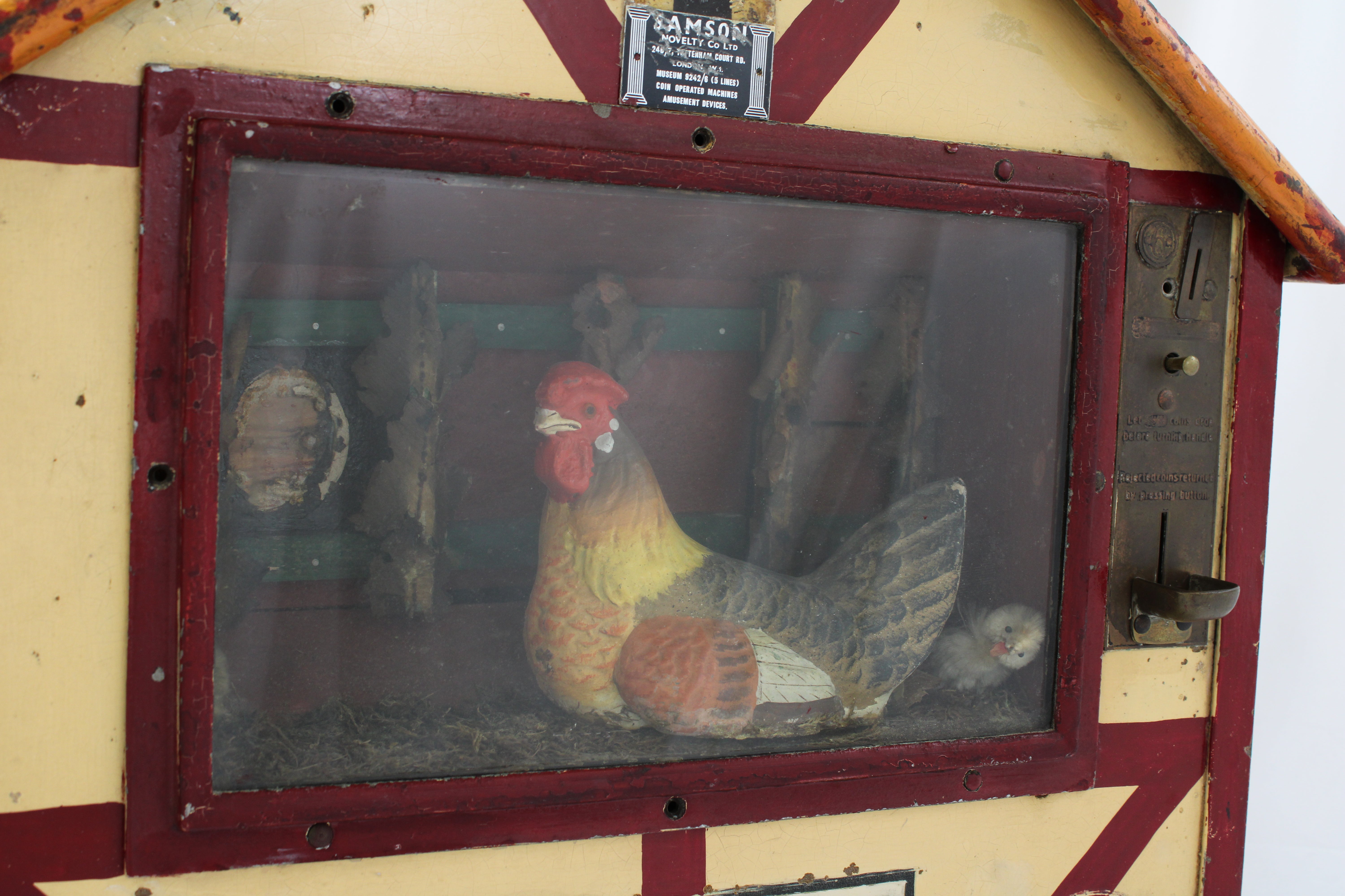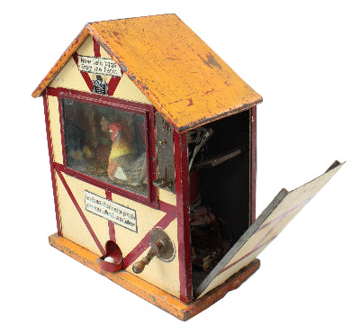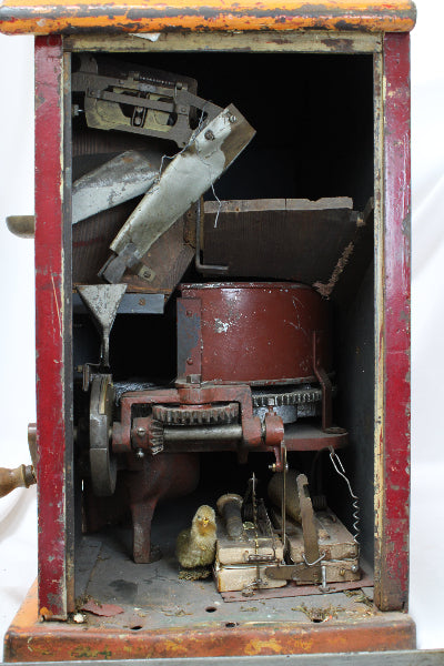 A mechanically minded buyer who desires to properly decorate the viewing window with feathered imitation chickens and hens while reconditioning this rare machine would be an ideal match for this lot.