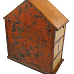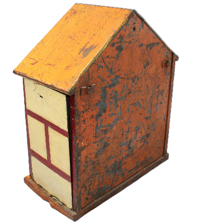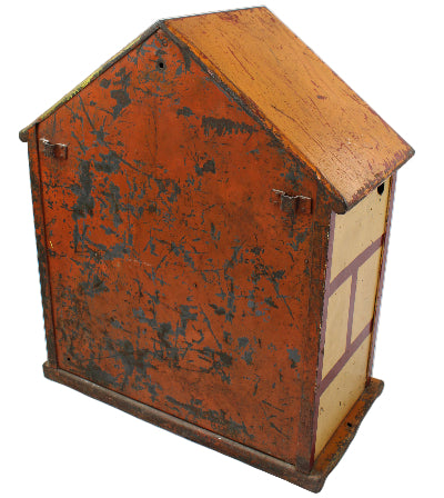 The metal on the machine is in good condition, but there is a need to sand and repaint the orange hen house roof and lower foundation due to paint loss and paint cracking. The original color of what is now painted orange was likely red.
