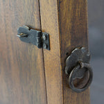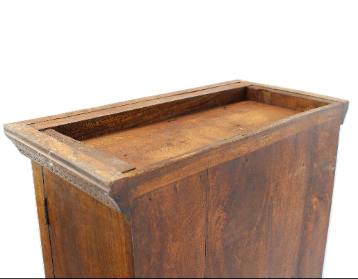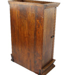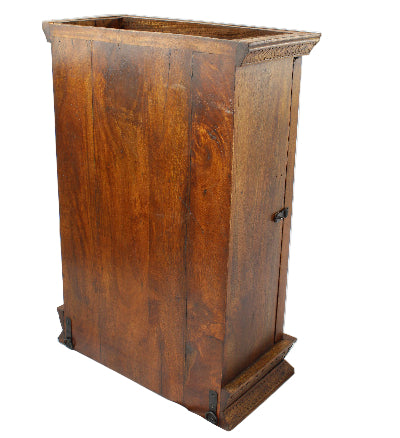 This antique solid wood cabinet measures 27" in height, 16" in width and 8-1/16" in depth.