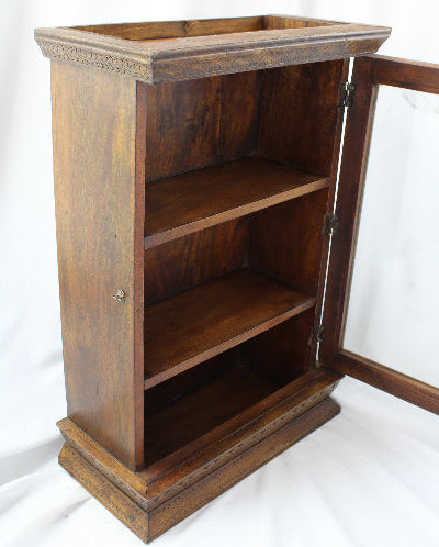 Antique Scrolling Wood & Glass Hinge Front 4-Level Wall Display Cabinet
