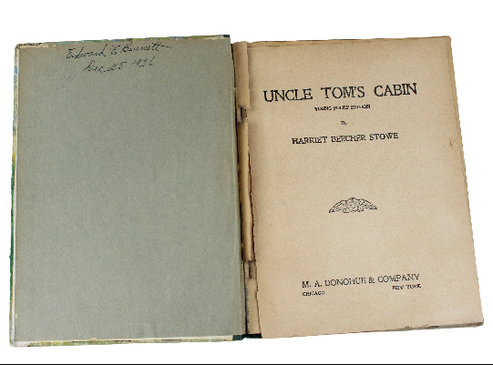 The book features a very good condition front cover color illustration of Uncle Tom and Eliza. The pages of the book have yellowed, but the printing and illustrations remain very readable.