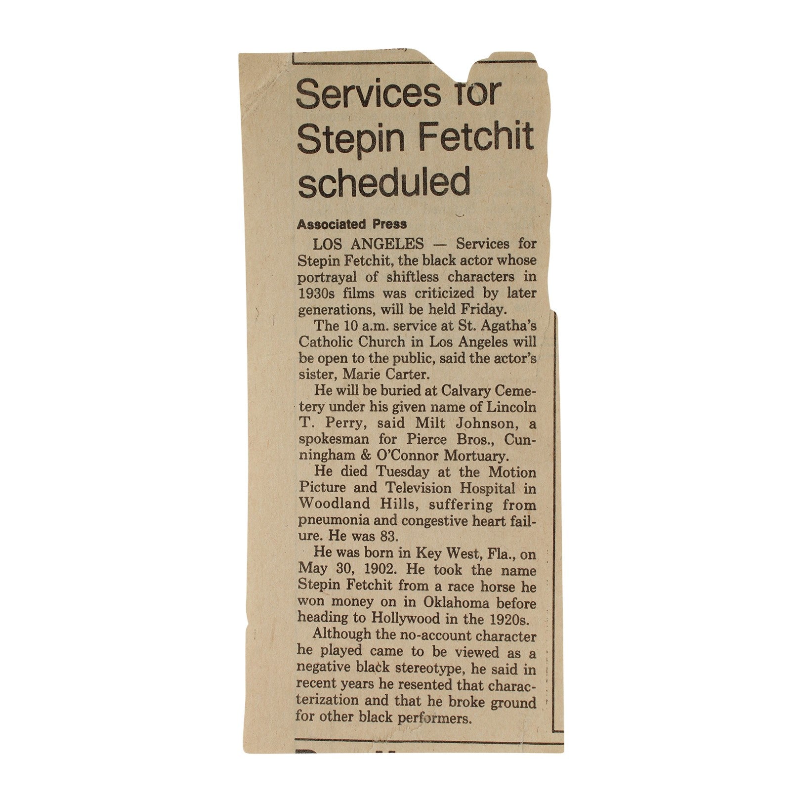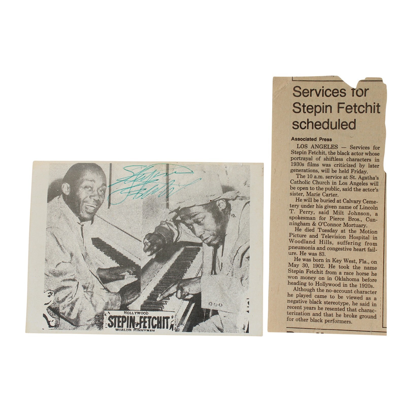 Autographed Stepin Fetchit Post Card With Original Associated Press Clipping Of His Funeral Notice