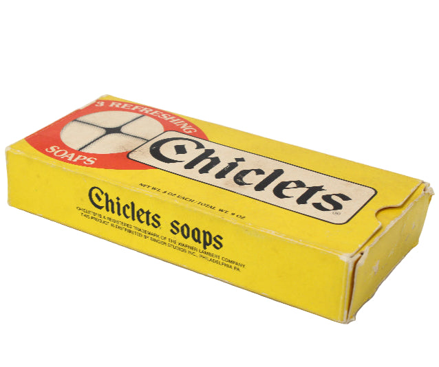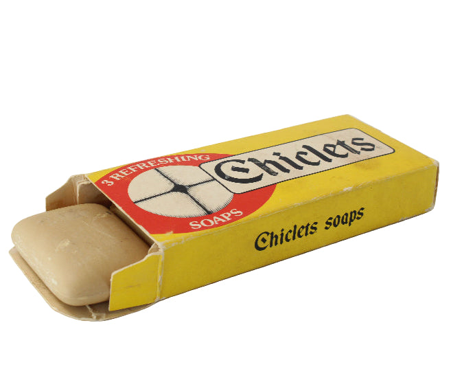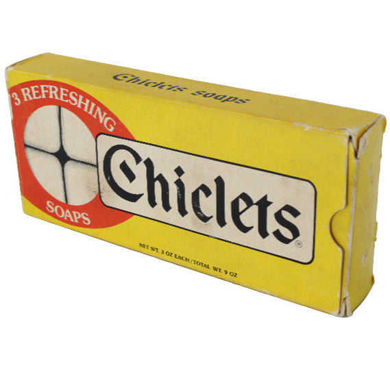 This box contains three 3-oz unused bars of Chiclet-shaped soap.