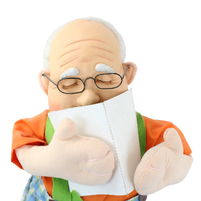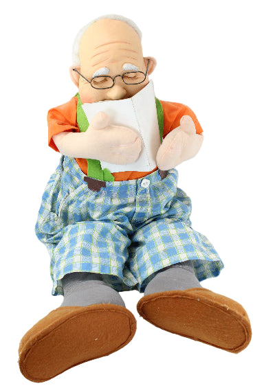 This vintage grandpa has a battery-operated device in his pocket that is supposed to enable him to make a snoring sound.
