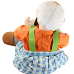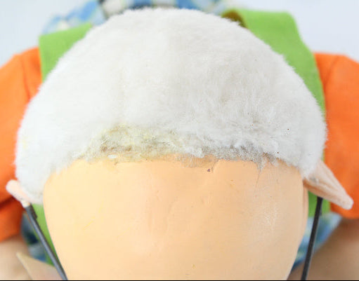 The 28" tall doll is made of soft cloth with cotton-like stuffing material. The doll's waist is weighted with a heavy metal internal plate so it can remain in a sitting position on a shelf without falling over.
