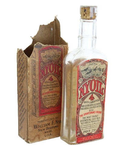 Early 1900's Empty Bottle Of Nyoil Lubricating Whale Oil with Box