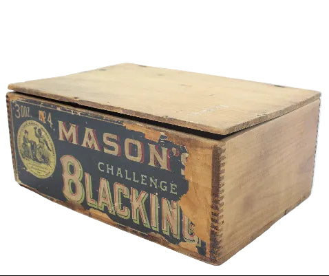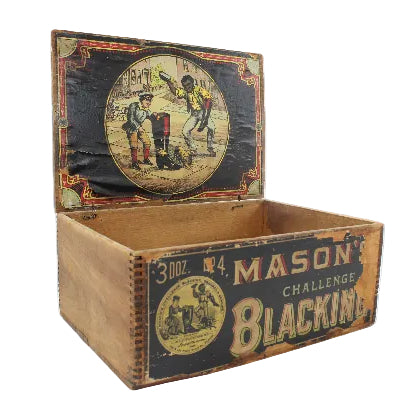 Early 1900's Mason's Challenge Blacking Wood Product Box with Famous Art