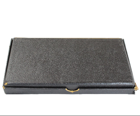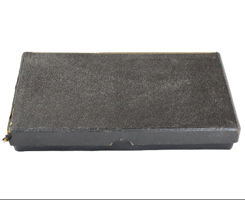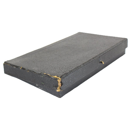 The heavy blue cardboard box holding the samples remains in very good condition with some paper separation on the right front flap and some staining from fluids on the inside of the top flap. The box measures 9-1/8" in length, 5" in width, and 7/8" in depth.