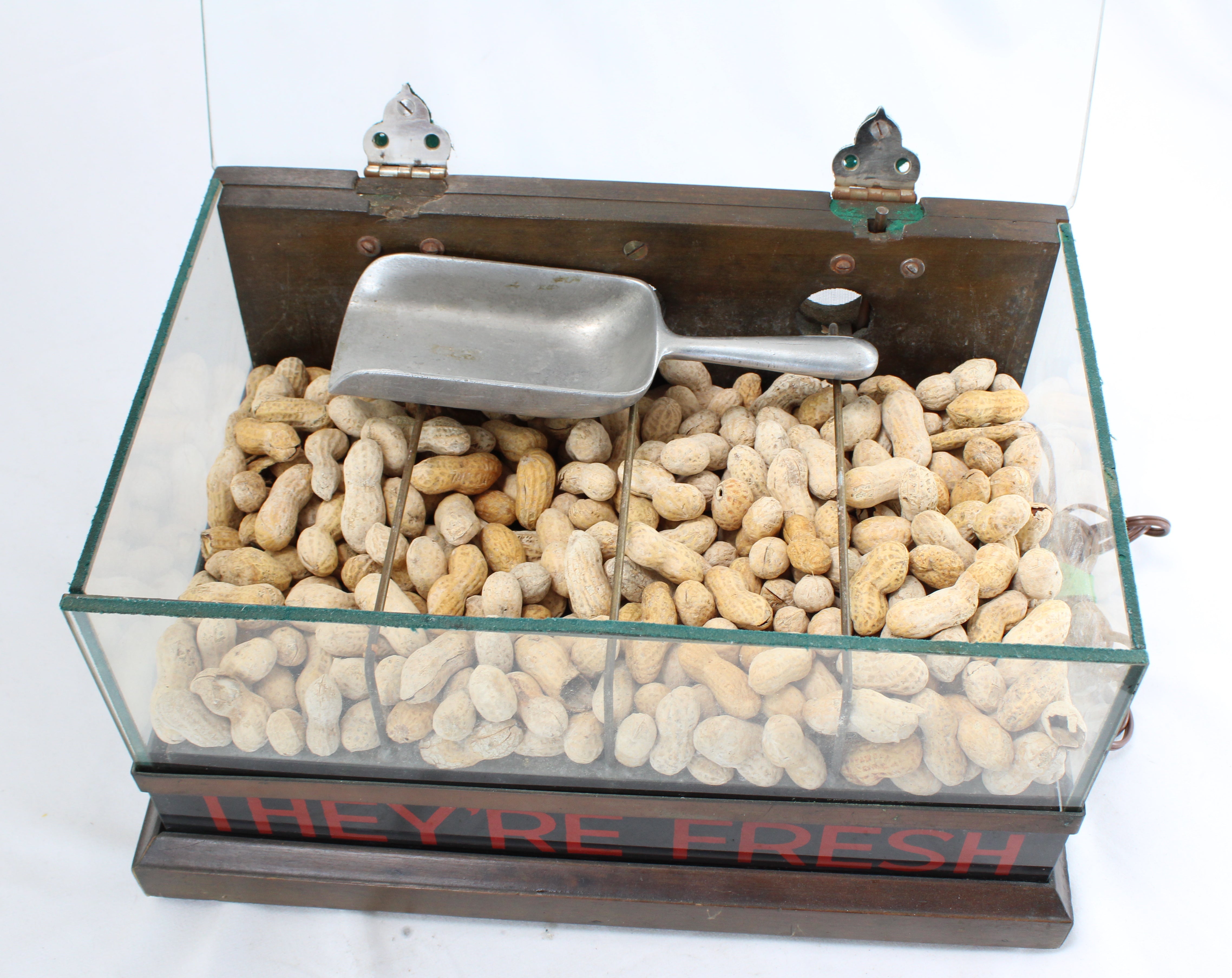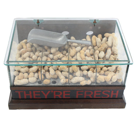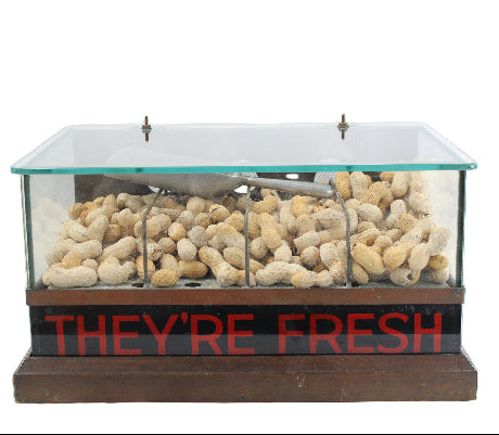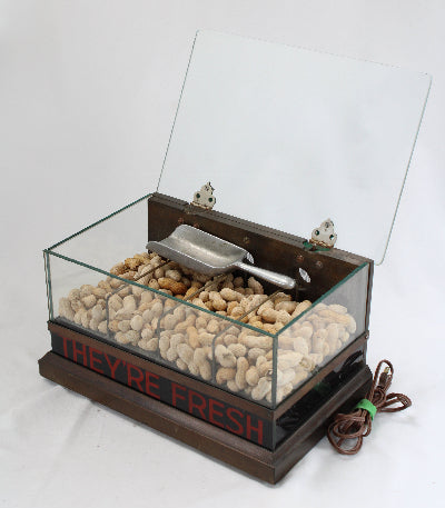 This display would have been common on the countertop of a movie theatre concession stand or a nut retailer.