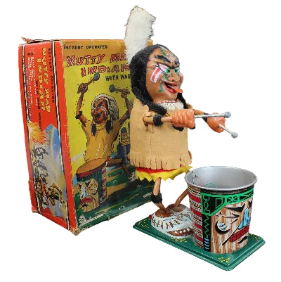Early 1960's Marx Nutty Indian with War Whoop Battery Operated Toy with Box (Not Working)