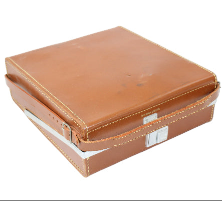 This set includes the camera, flash unit, flash bulbs, and its original rawhide carrying case, all in excellent condition.
