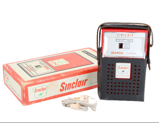 Early 1960s Sinclair “Dino Supreme” Gasoline Pump Transistor Radio w/ Case, Headphones & Original Box (Not Working)