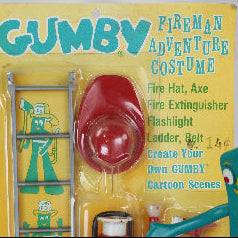 Gumby Items - Gumby Fireman Adventure Costume (NIB), 6" Gumby in Boots, 2-3/4" Gumby & 2-Small Gumby on Pokey