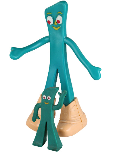 The small 2-3/4" traditional green Gumby doll looks great when positioned by the two-horse riding Gumby's.