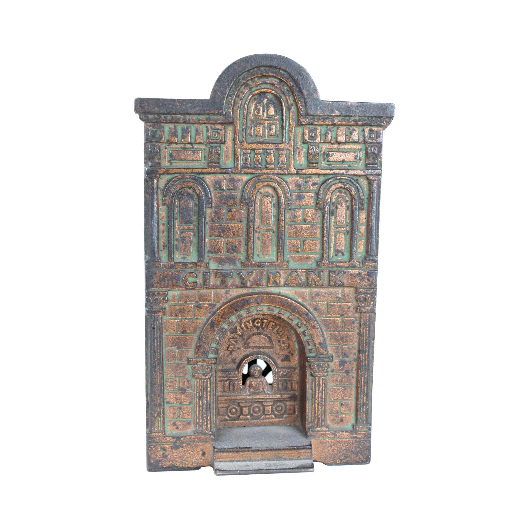 H.L. Judd Antique Cast Iron City Bank Building With Teller