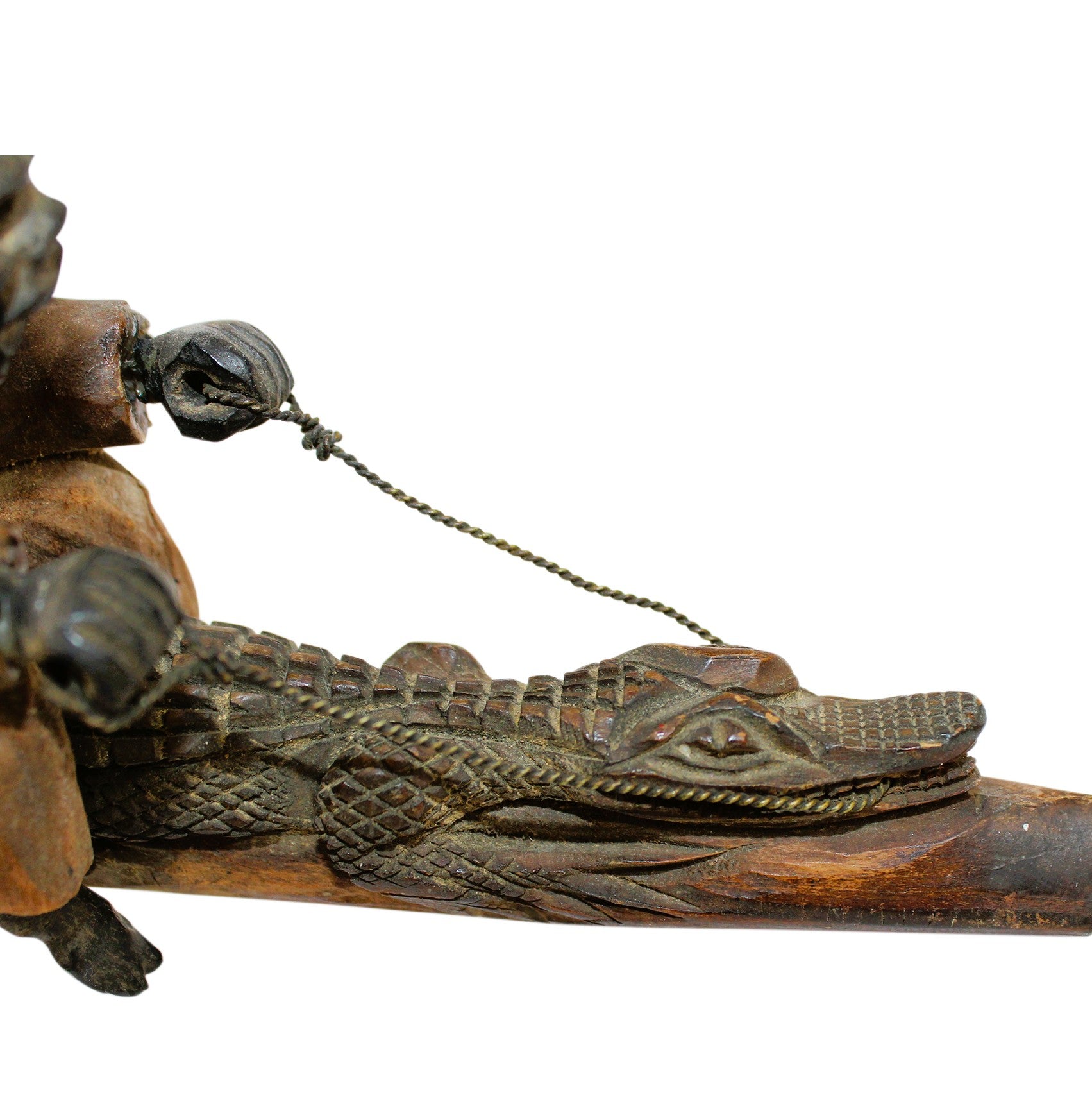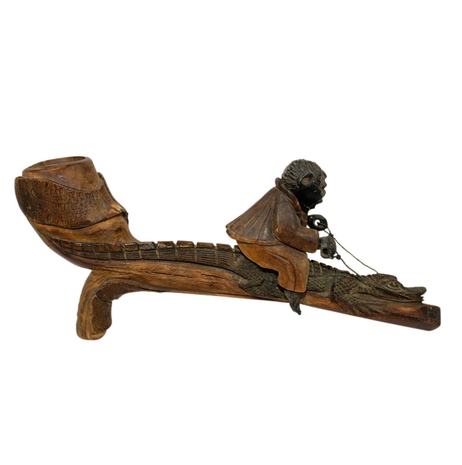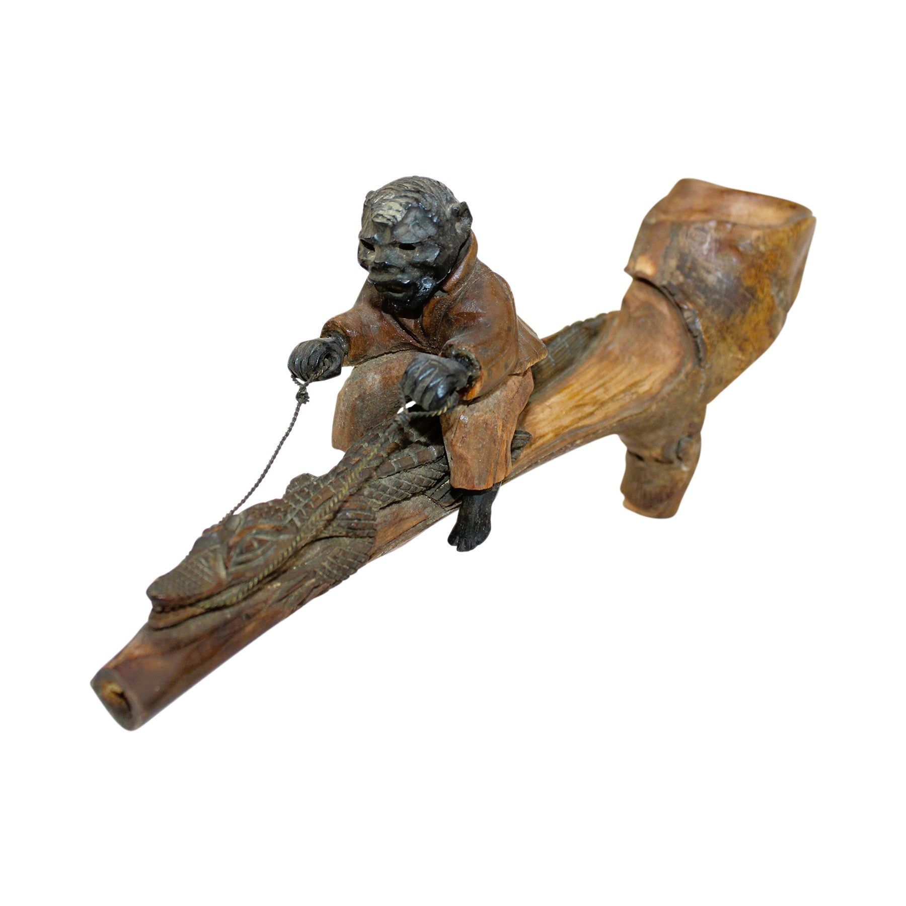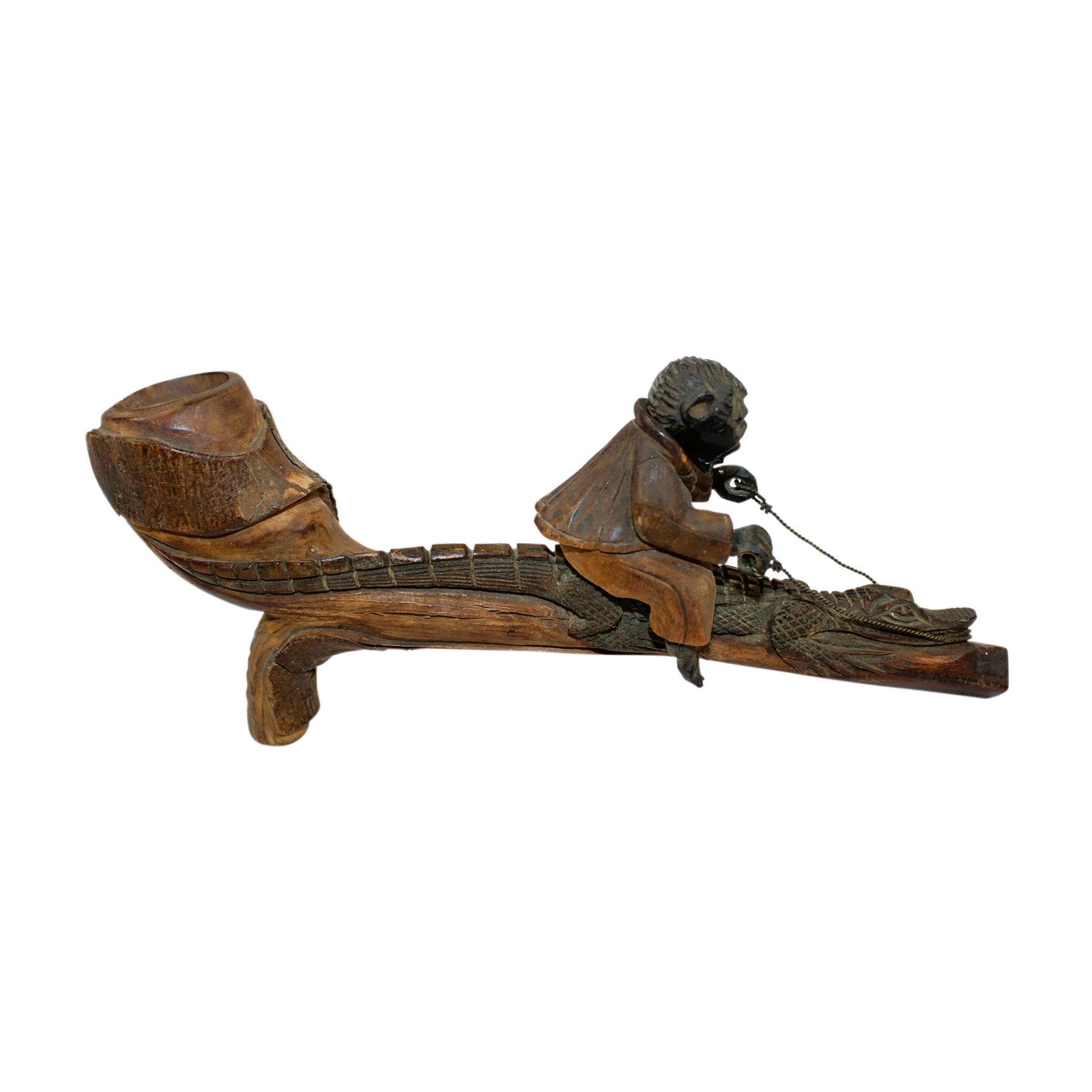 Hand Carved Early 1900's Pipe Featuring Black Man Riding An Alligator