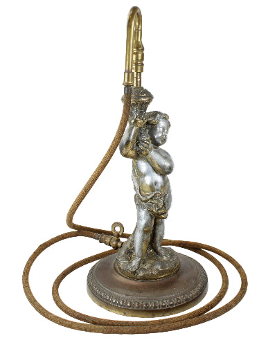 This beautiful 14" tall heavy cherub countertop lighter would have been found on the counters of hotel desks, saloon bars, tobacco shops and drug stores.
