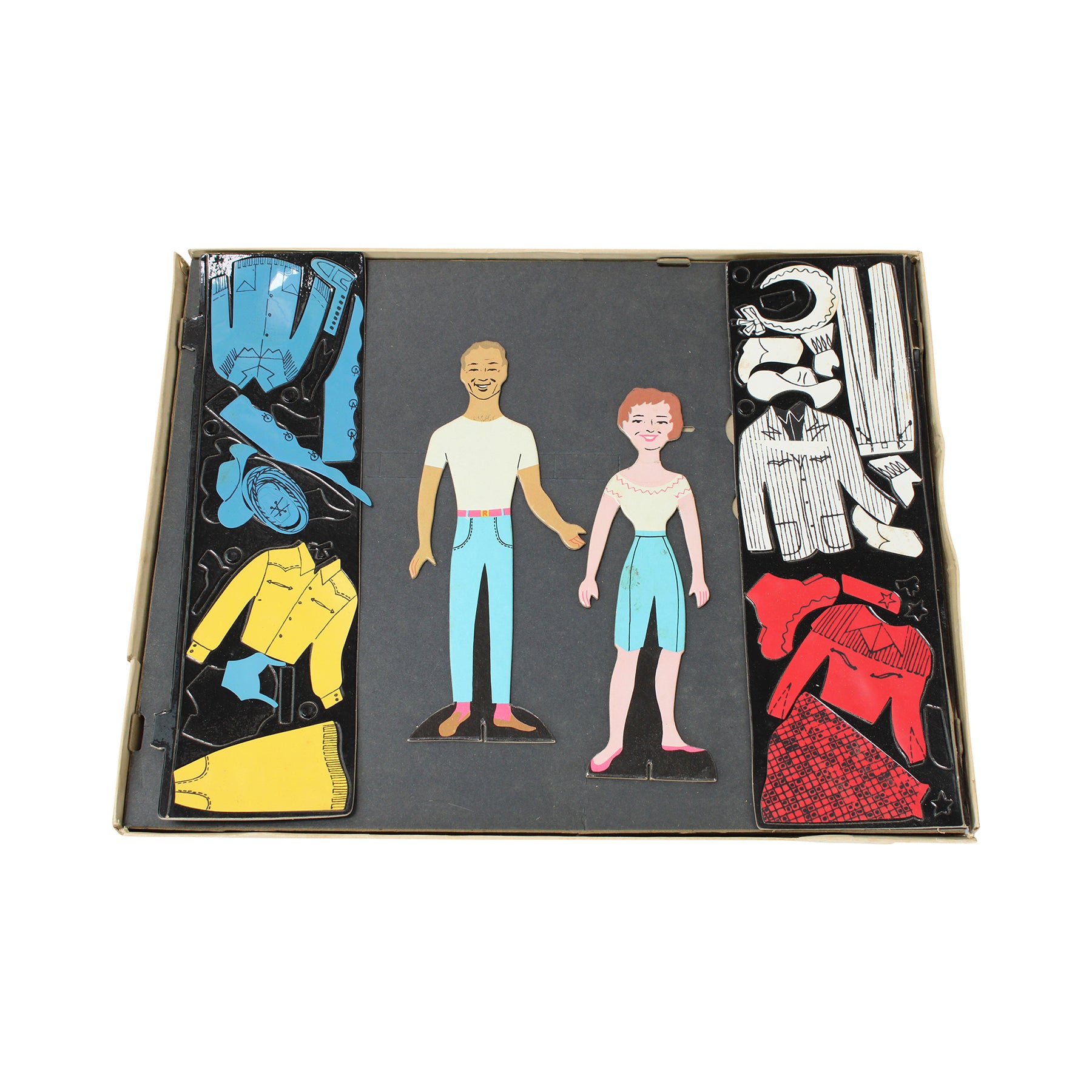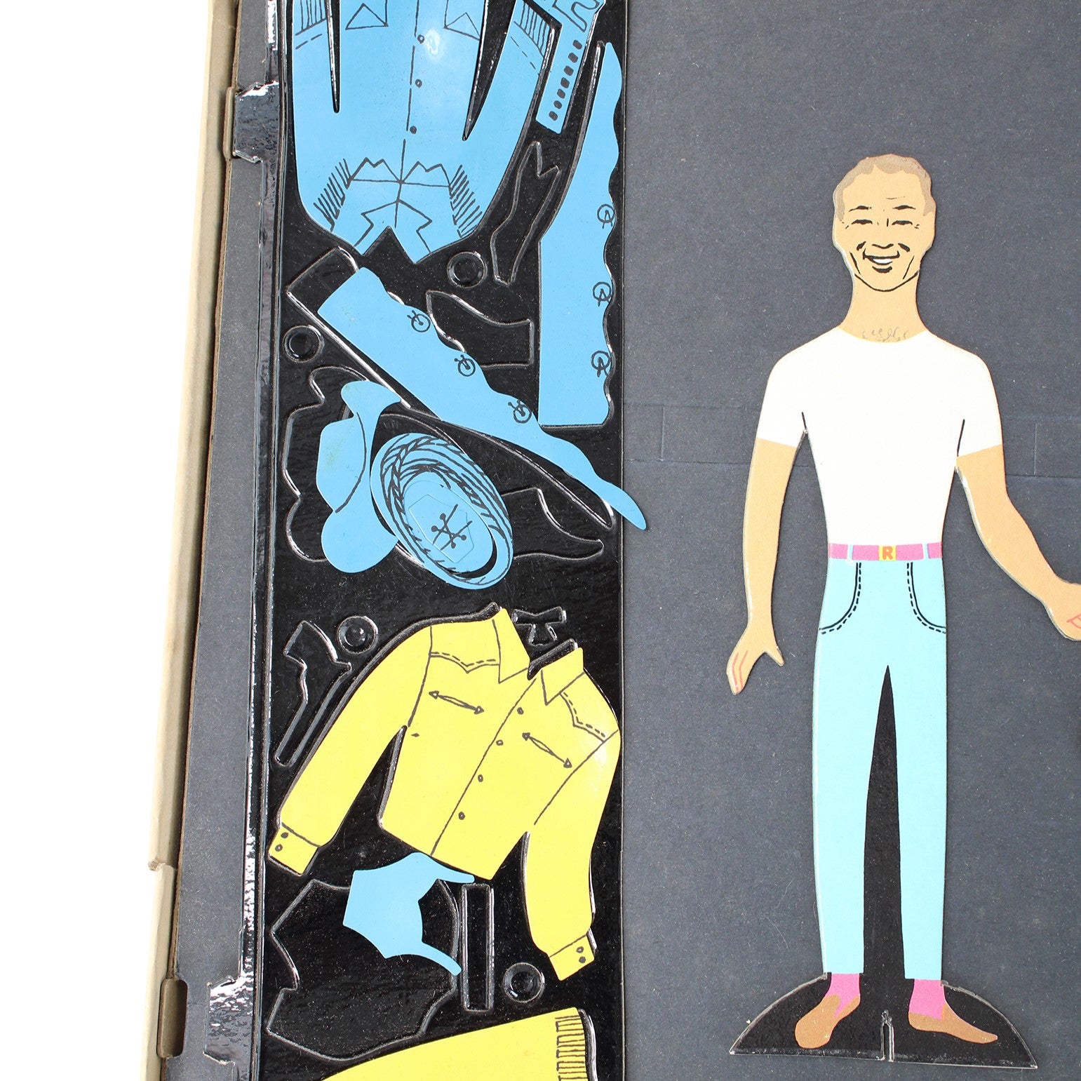 This vintage Colorform kit features a heavy cardboard stand-up of Roy and Dale that can be dressed with the various clothing pieces that would stick to the cutouts.