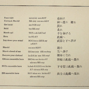 Among the phrases is "ha-DA-ka-nee NA-ray!" which translates in English to "Remove your clothes." We would not be surprised to discover a social website by that name. Included with the pamphlet is an advertisement card for the Han Yang Cafe with the hours of 5 PM to Midnight, with charming dancing hostesses who may or may not "ha-DA-ka nee NA-ray."