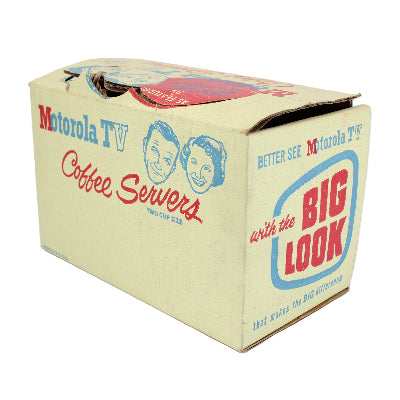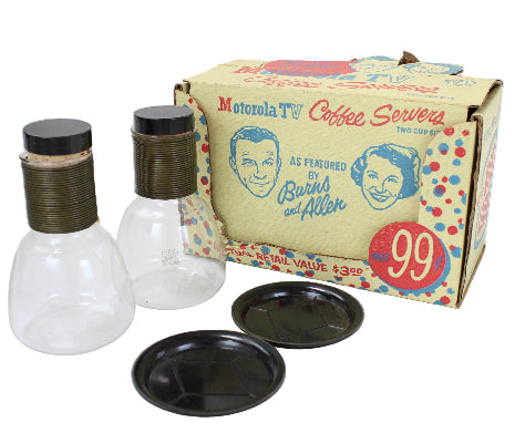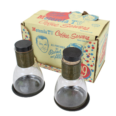 Mid-1950's Motorola TV Burns & Allen Pyrex Coffee Servers with Box