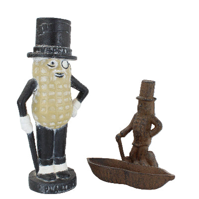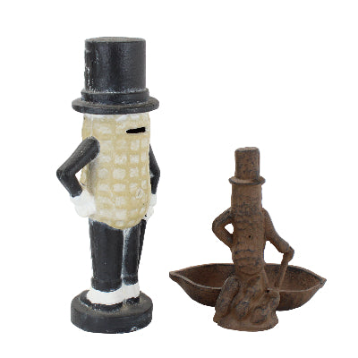 Mr. Peanut Cast Iron Nut Tray & Mr. Peanut 11" Tall Coin Heavy Metal Bank
