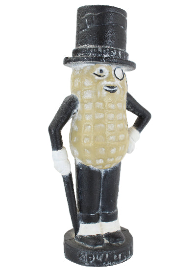 The heavy Mr. Peanut iron tray (image without the monocle, so probably pre-1920) stands 7-3/8" tall. The tray is in very good condition with no obvious issues.