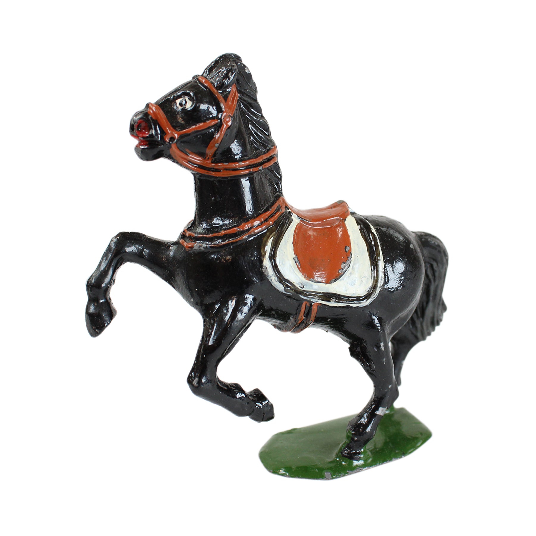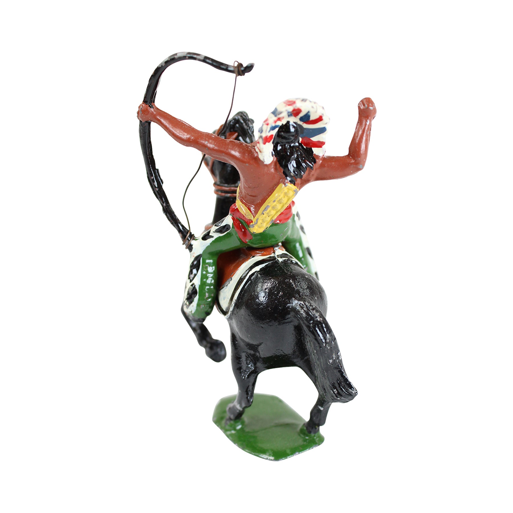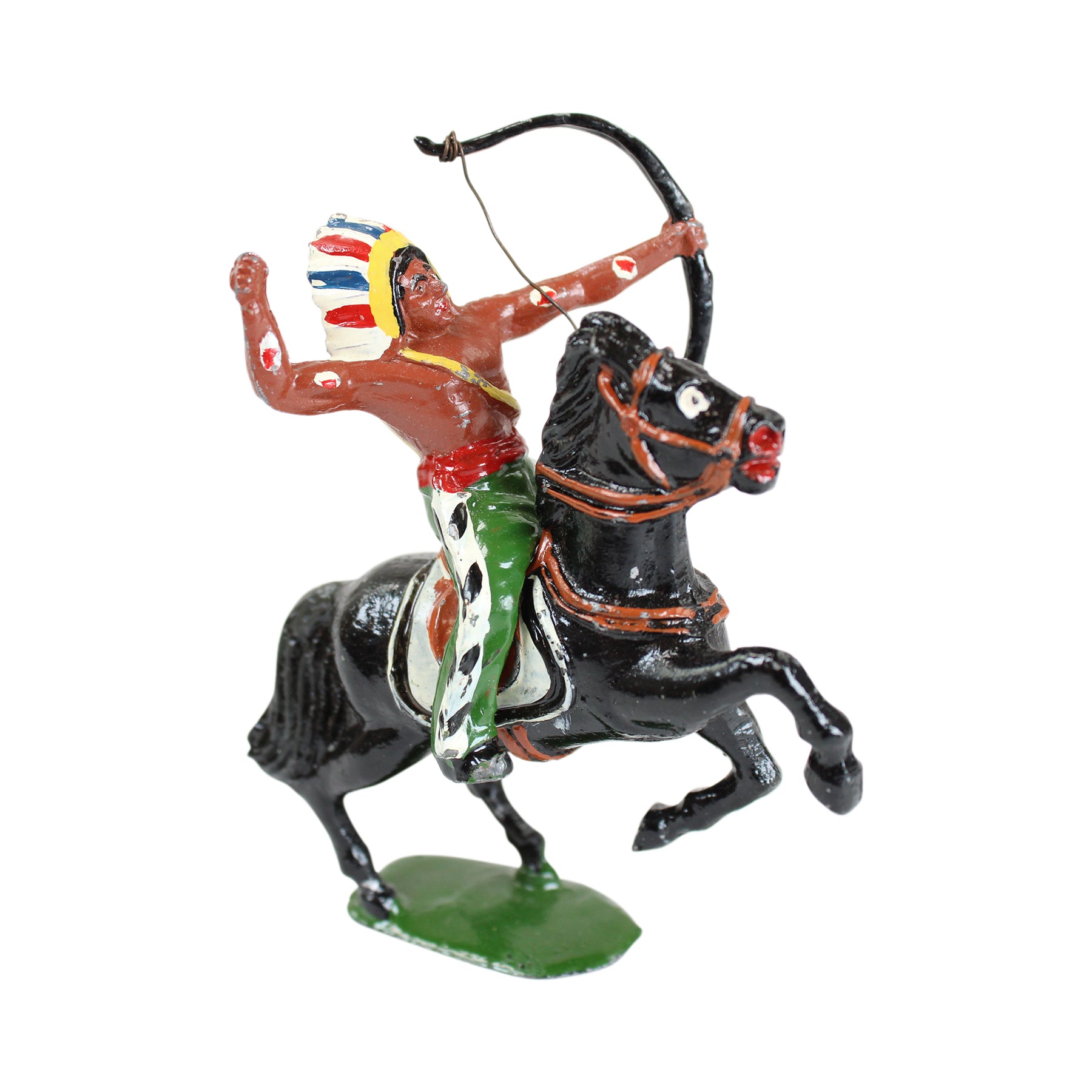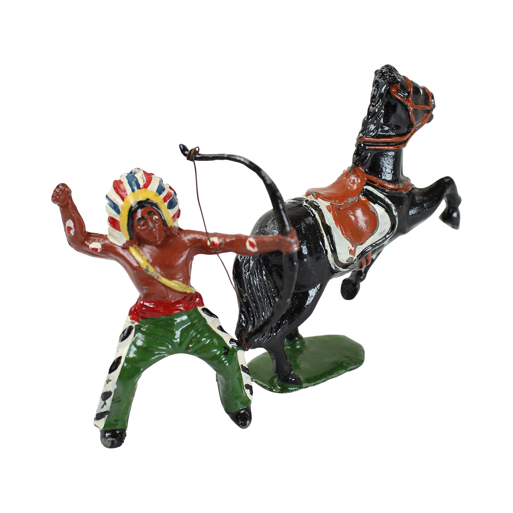 This antique box with the original, like-new painted lead Indians and black stallion is in pristine condition.