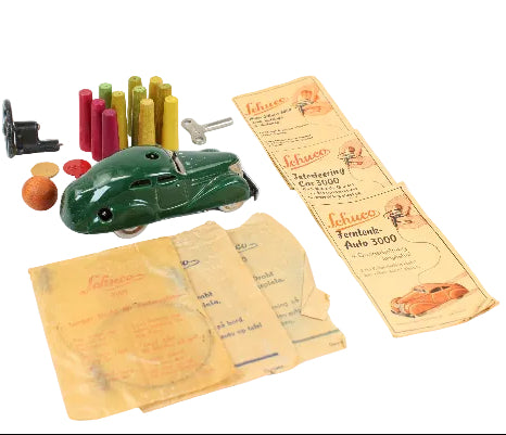 Pre-WWII Schuco German 3000 Fernlink Clockwork Car with All Original Parts & Box