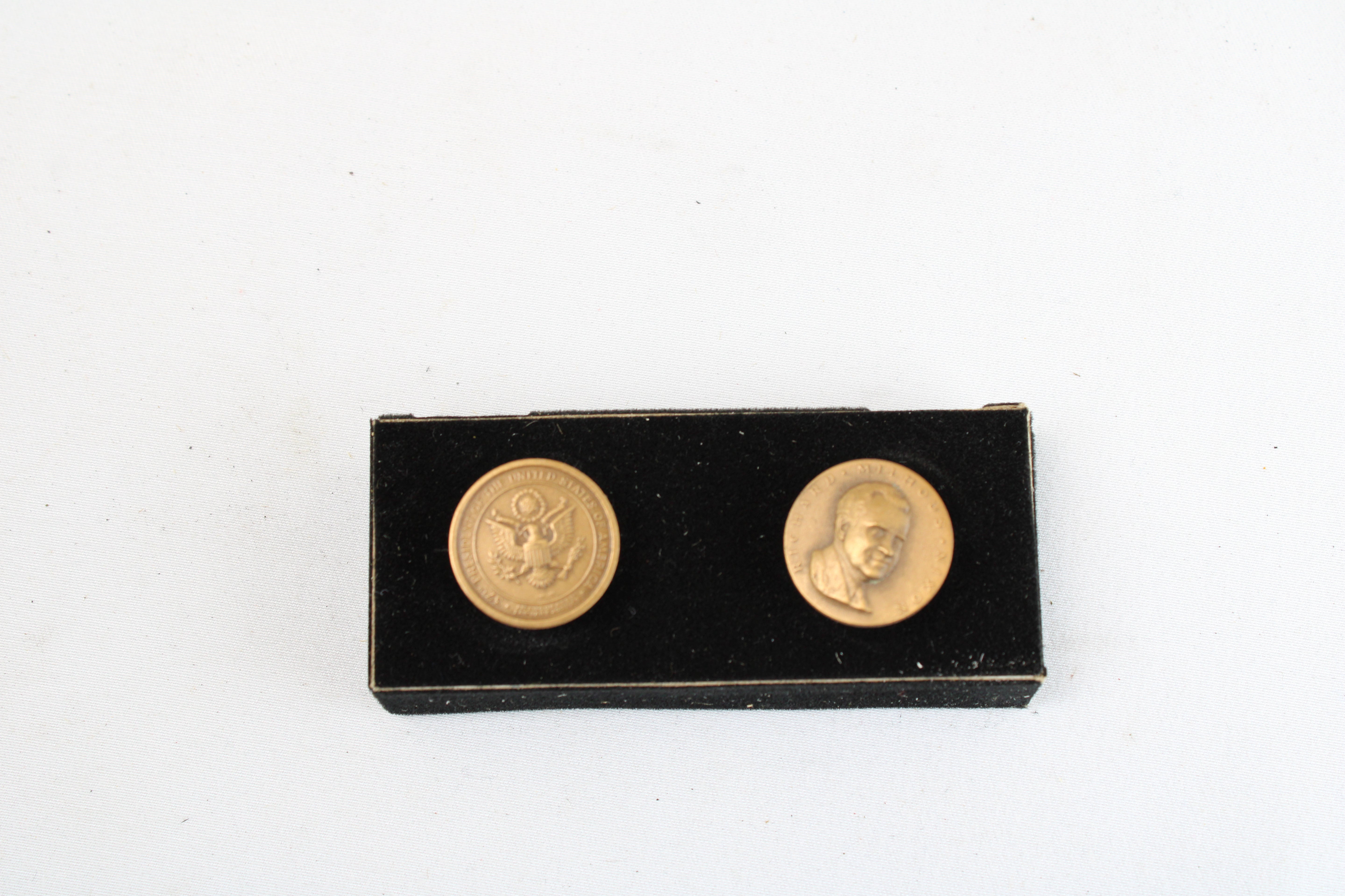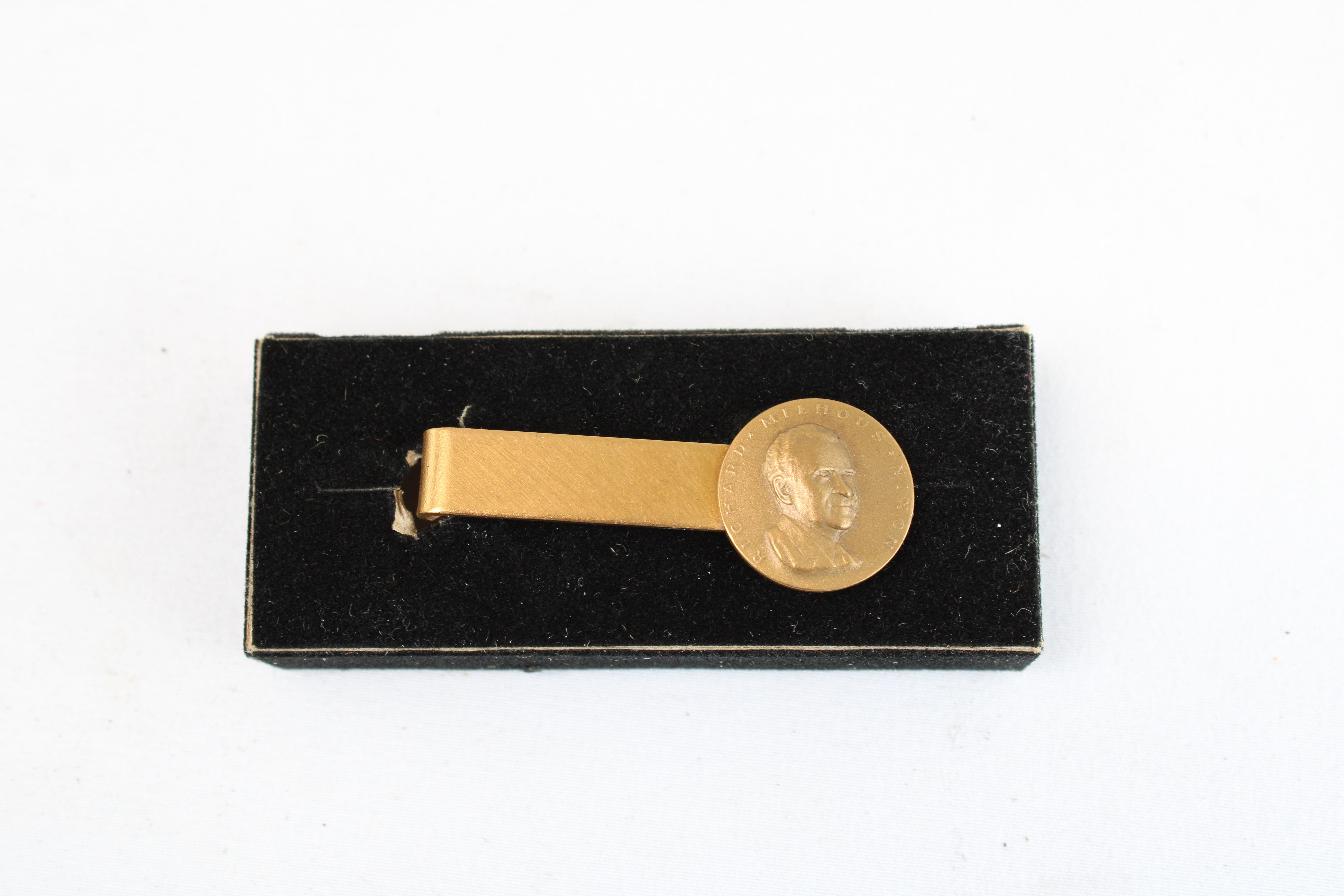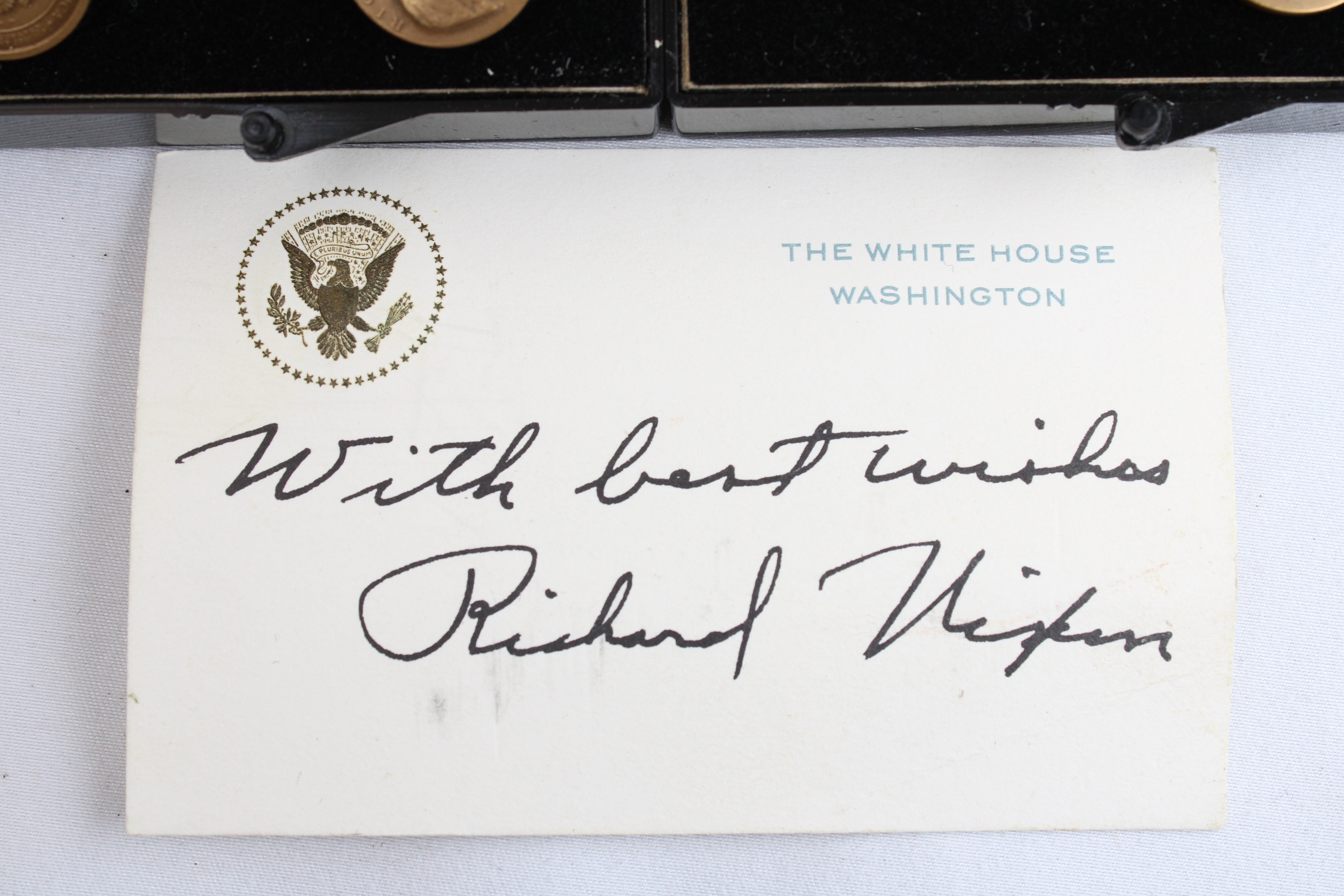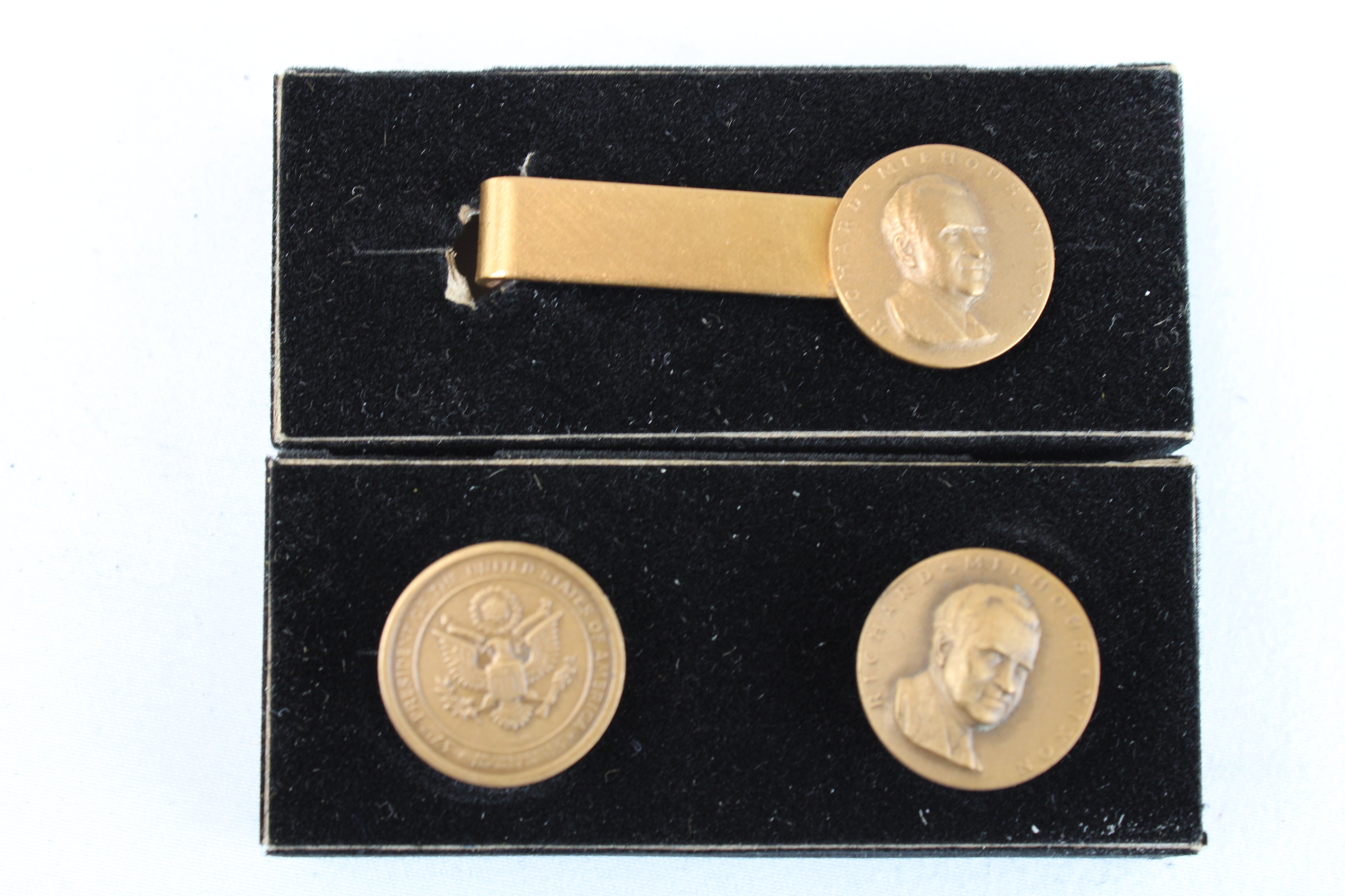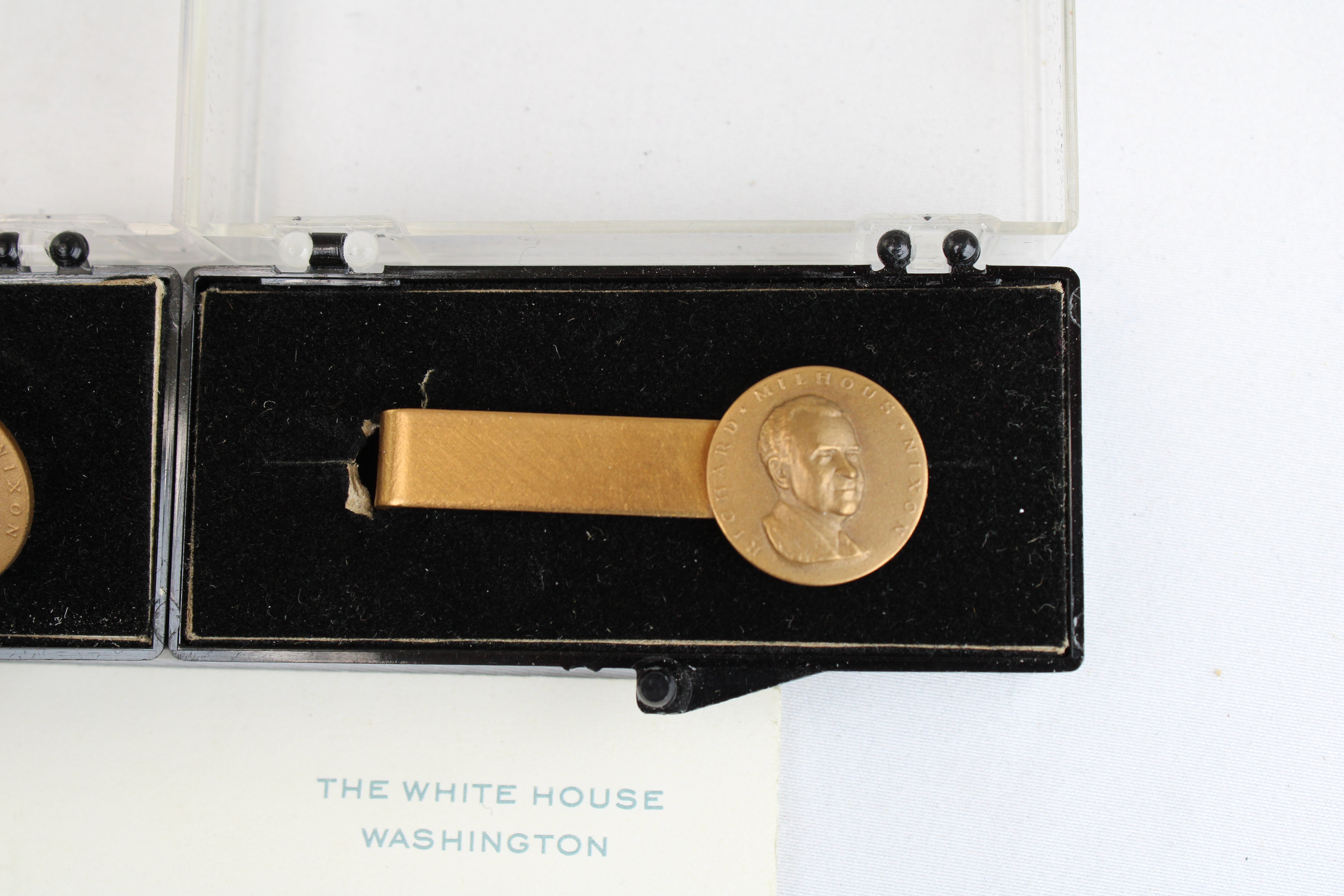President Nixon White House Tie Clip and Cufflinks and Signed Presidential Gift Card (Given as White House Gifts)