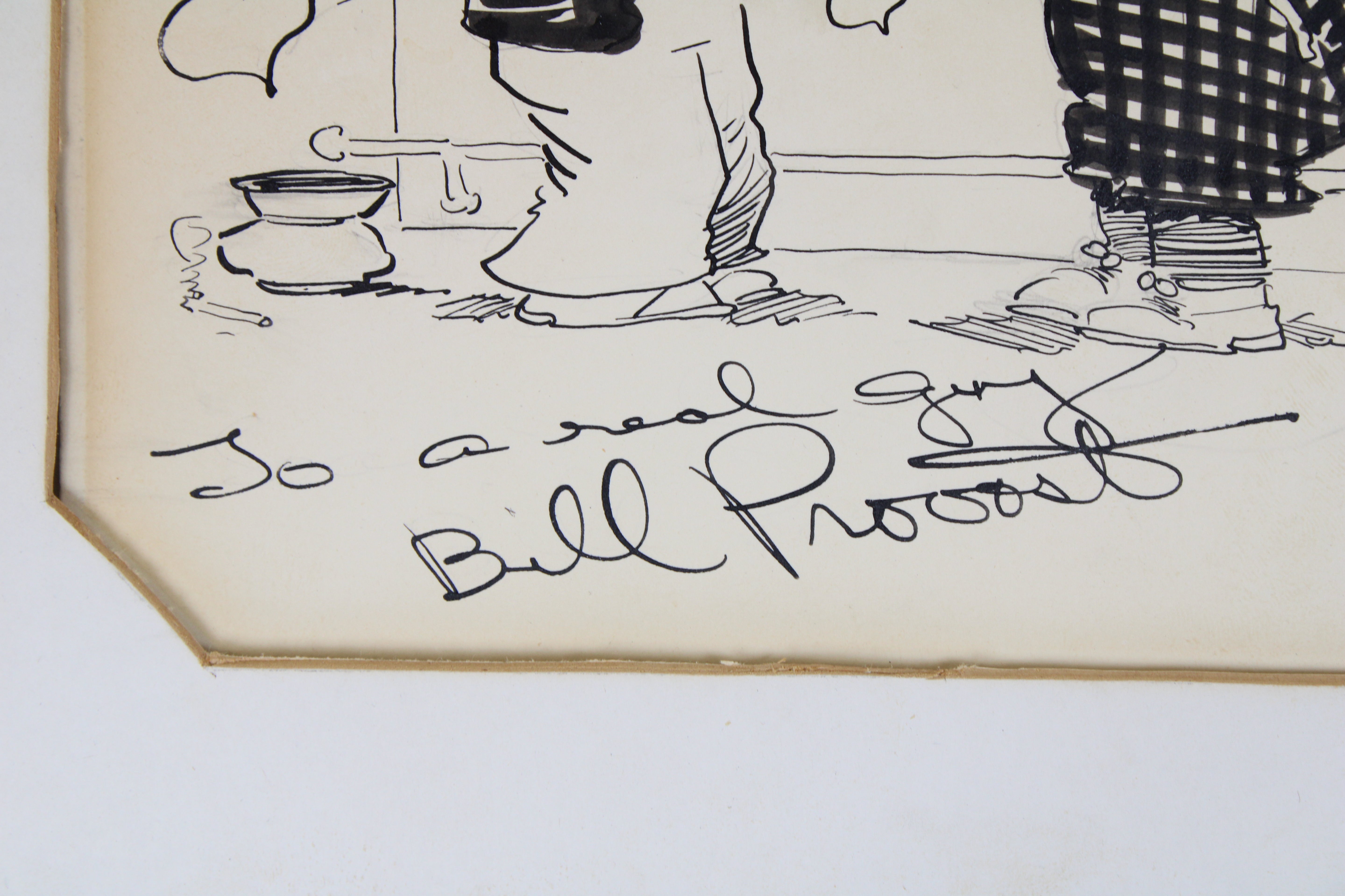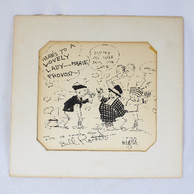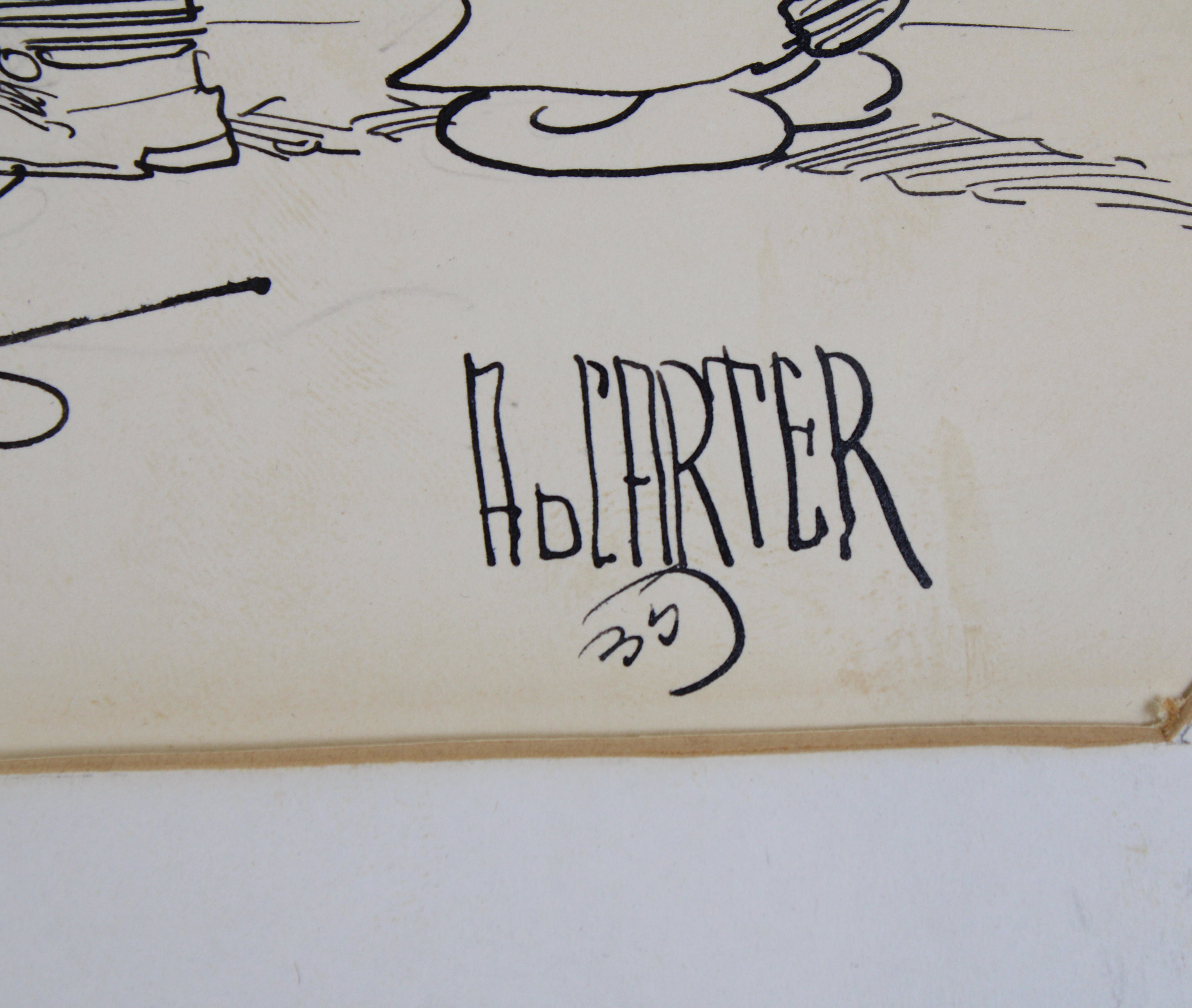 This personalized cartoon drawing features the characters that were routinely drawn by Carter for "Just Kids." The condition of the black ink drawing is very good, and Carter's signature and date are present.