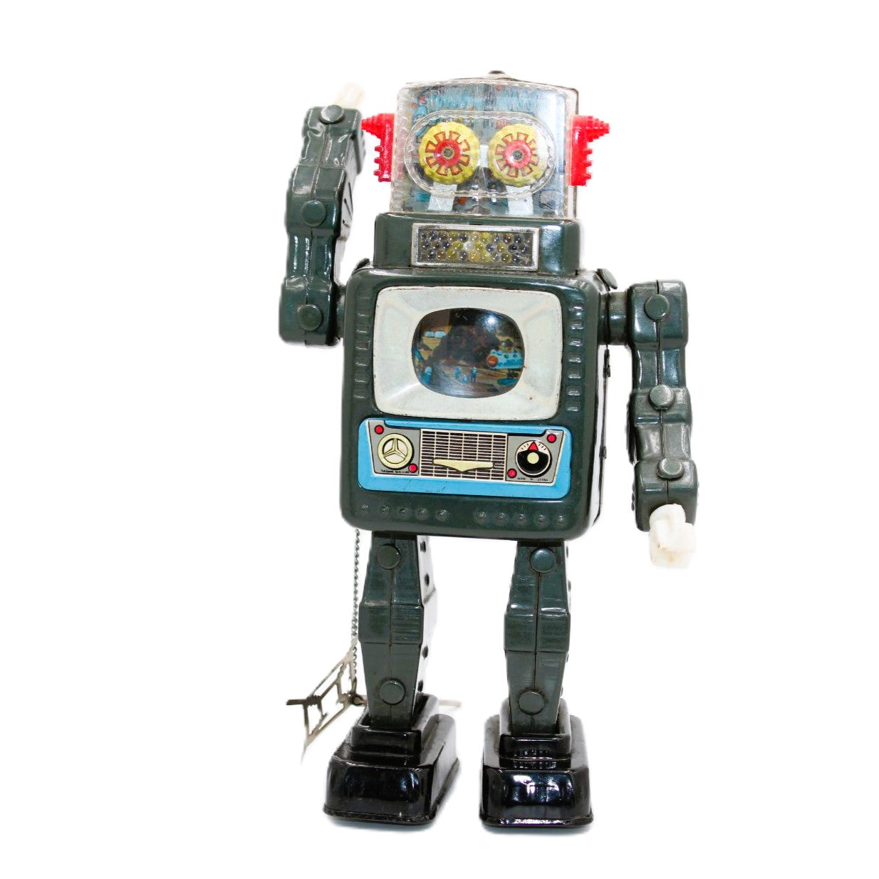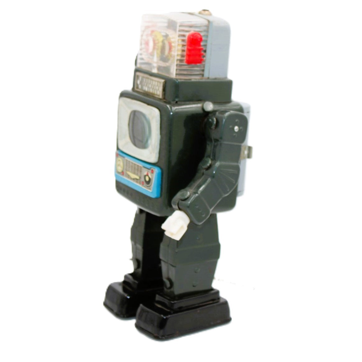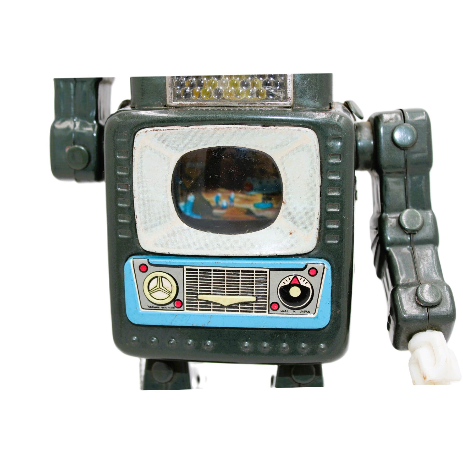 The robot's condition is very good to excellent with no known missing parts, and very few scratches but some minor oxidation on the metal can be seen which is not unusual for a toy that is over 60 years old. This television robot is highly collectible and is representative of the Golden Age of Japanese battery-operated toys.