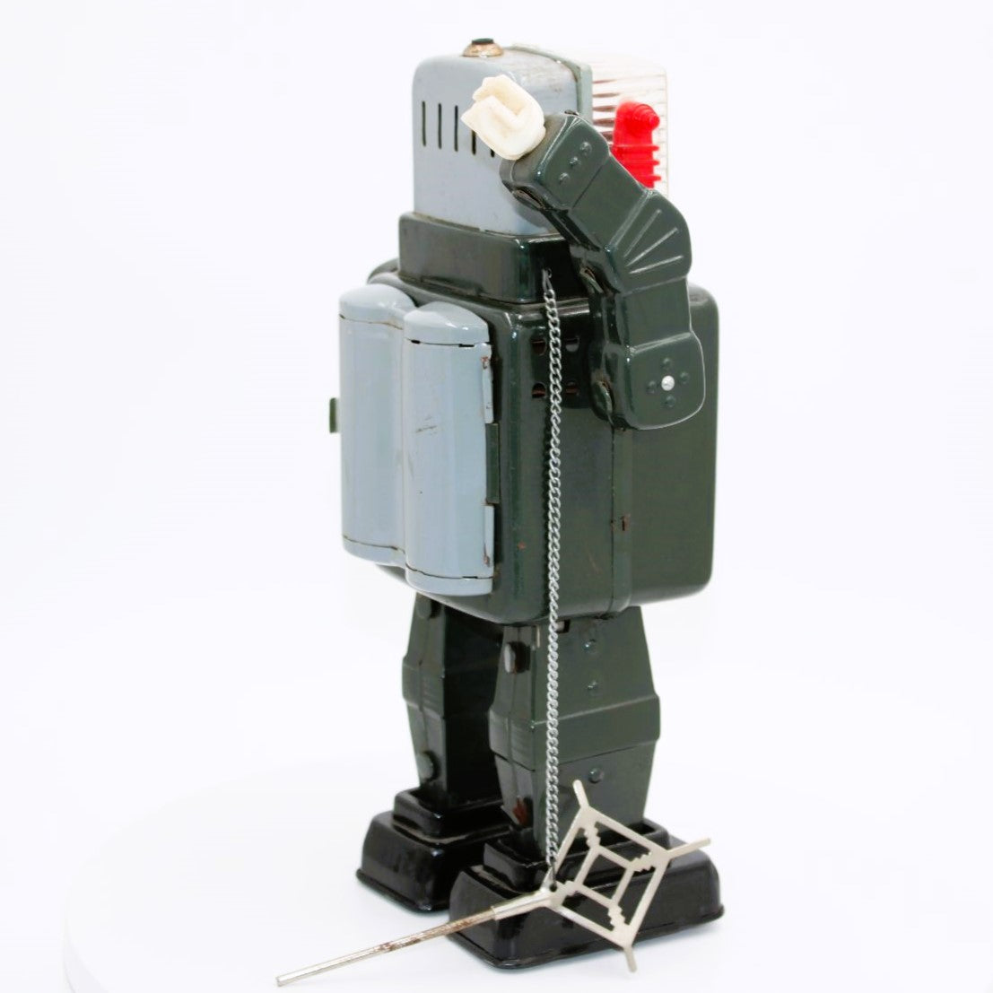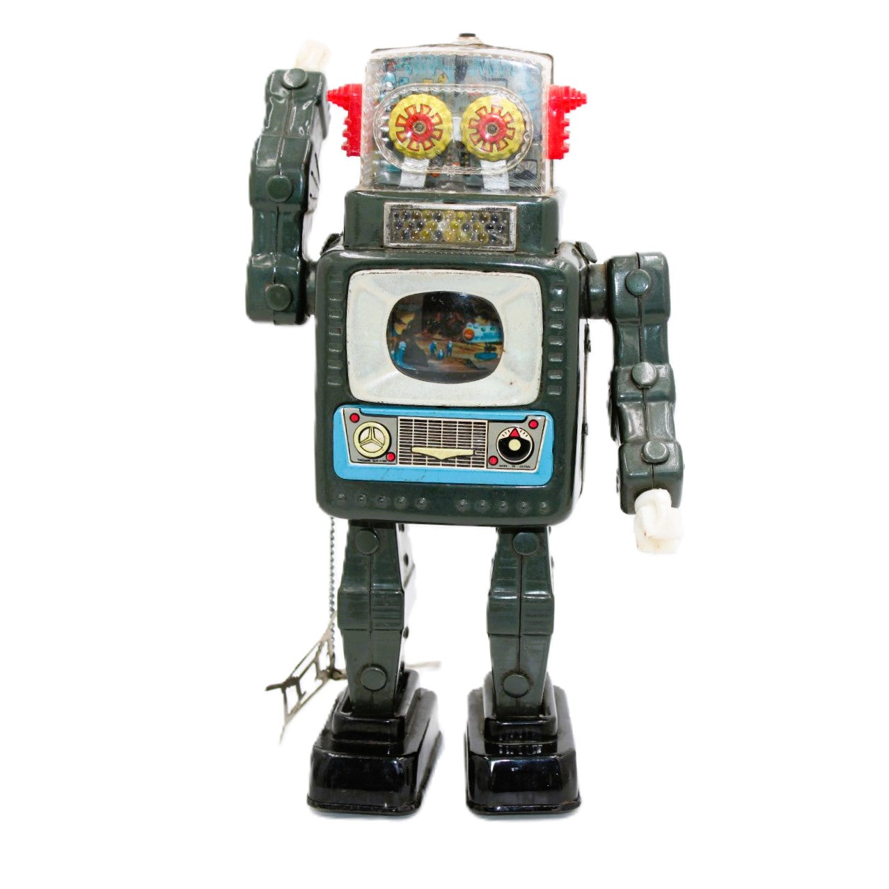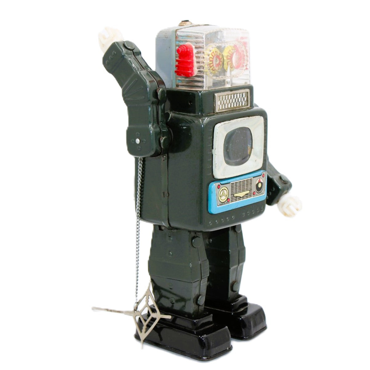 The robot's condition is very good to excellent with no known missing parts, and very few scratches but some minor oxidation on the metal can be seen which is not unusual for a toy that is over 60 years old. This television robot is highly collectible and is representative of the Golden Age of Japanese battery-operated toys.