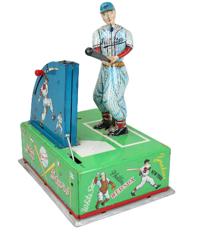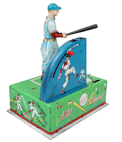 Rare 1950's "All Stars Mr. Baseball Jr. with Automatic Batting Machine" Tin-Litho Battery Operated Toy (Not Working)