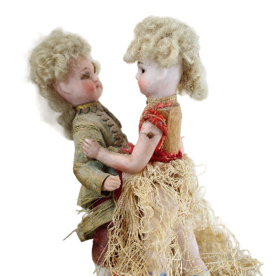 Rare Antique Piano Automation Hand Crank Music Box with Two Dancers