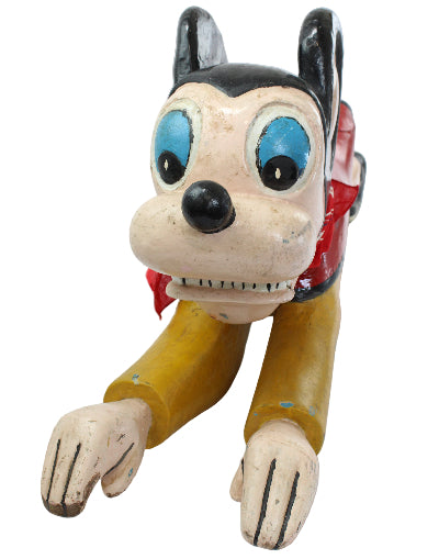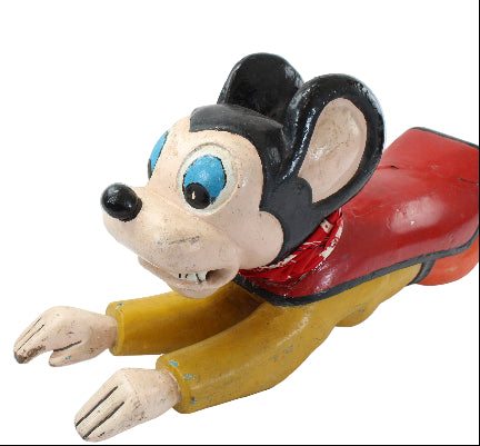 The figure still has its original paint, and the character's blue eyes and Superman-type cape, tight shorts, and tight shirt set the stage for a Clark Kent transformational character that evolved into a large, colorful mouse.