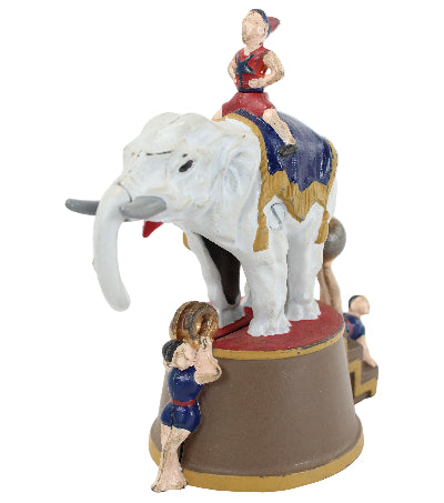 Replica Cast Iron Elephant & Three Clowns Mechanical Bank