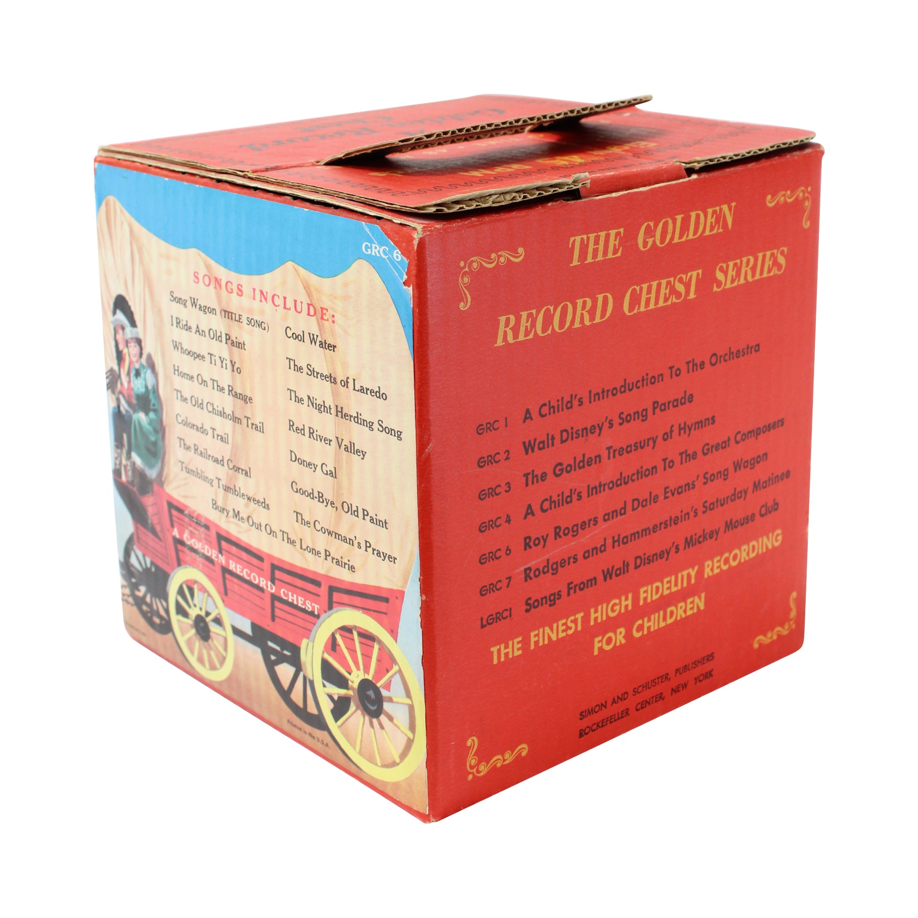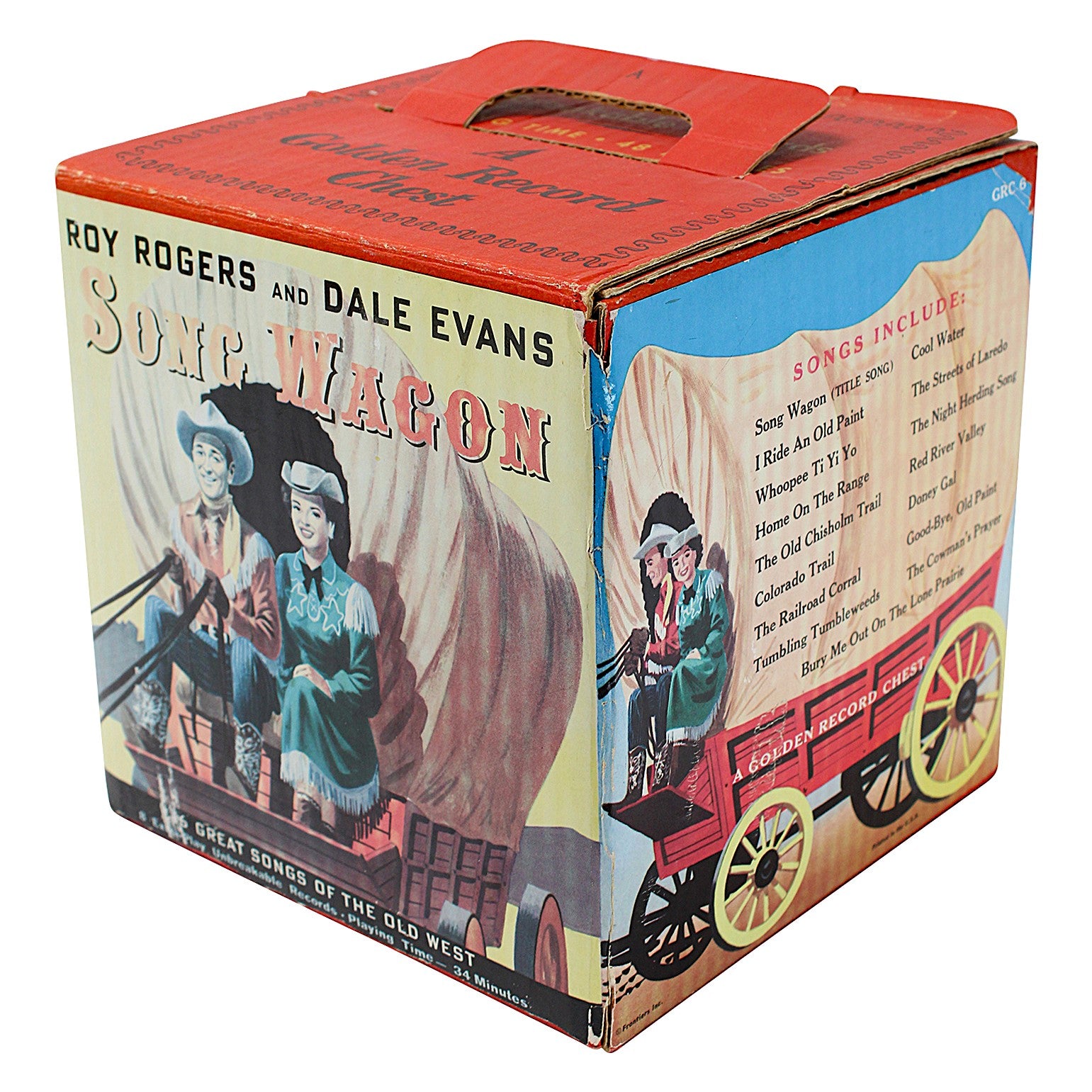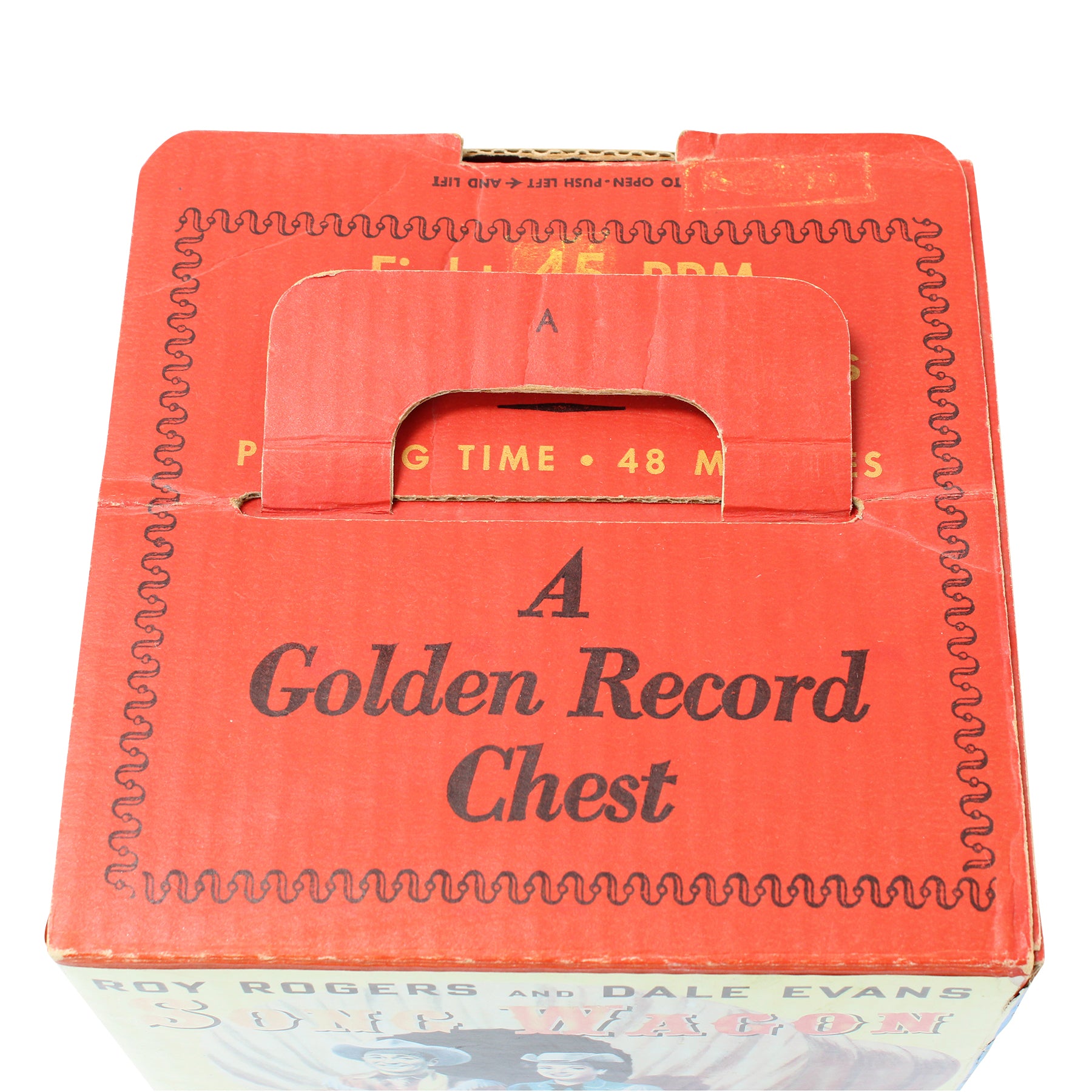 Part of the Golden Record Chest Series from Simon and Schuster, the "Roy Rogers and Dale Evans Song Wagon" boxed collection was released in August of 1956 and contains eight 45rpm "unbreakable" records of Roy and Dale singing their favorite cowboy tunes.